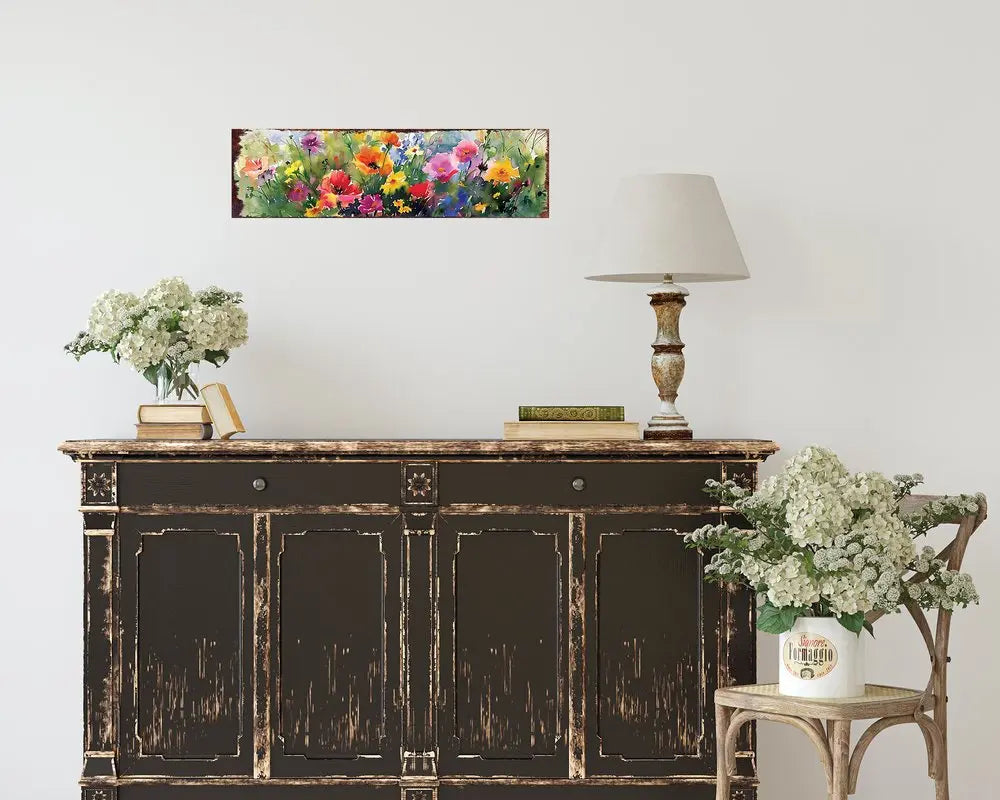 • Decoración de pared de madera con flores blancas, verdes y rojas de 25 x 81 cm