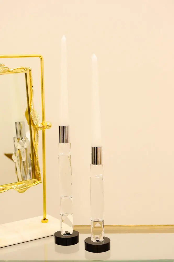 Candelabro de mesa cónico de cristal plateado, transparente y negro de 11"