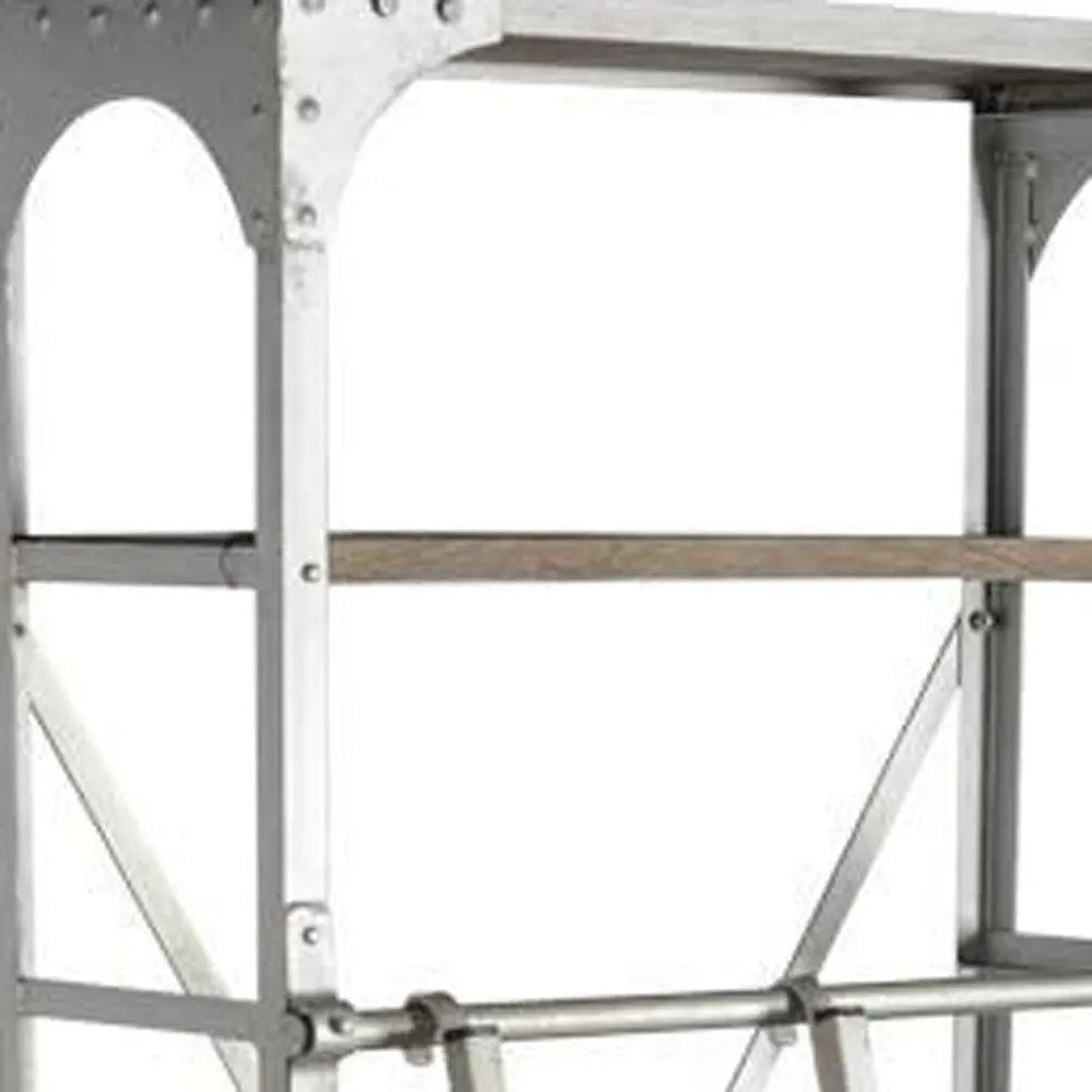 Librería de cinco niveles de 81 cm en madera maciza y metal niquelado, color marrón claro, con dos cajones