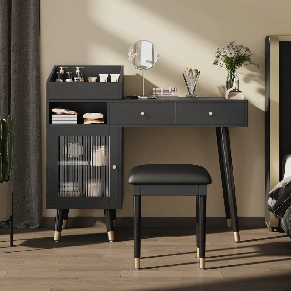 Cómoda de dos cajones de madera negra de 44"