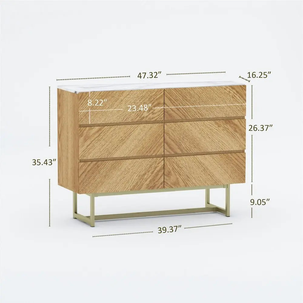 Cómoda de seis cajones de madera maciza y manufacturada marrón de 47"
