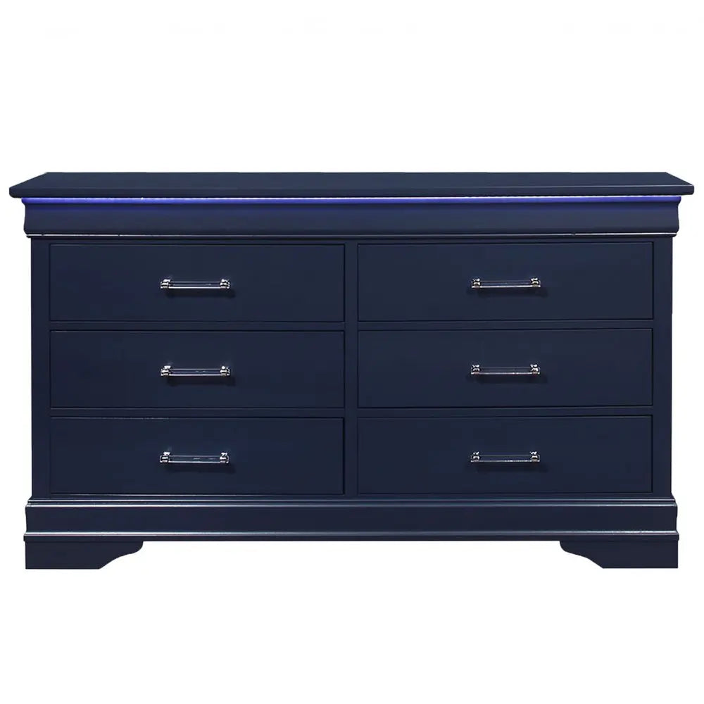 Cómoda doble de seis cajones de madera maciza azul de 59"
