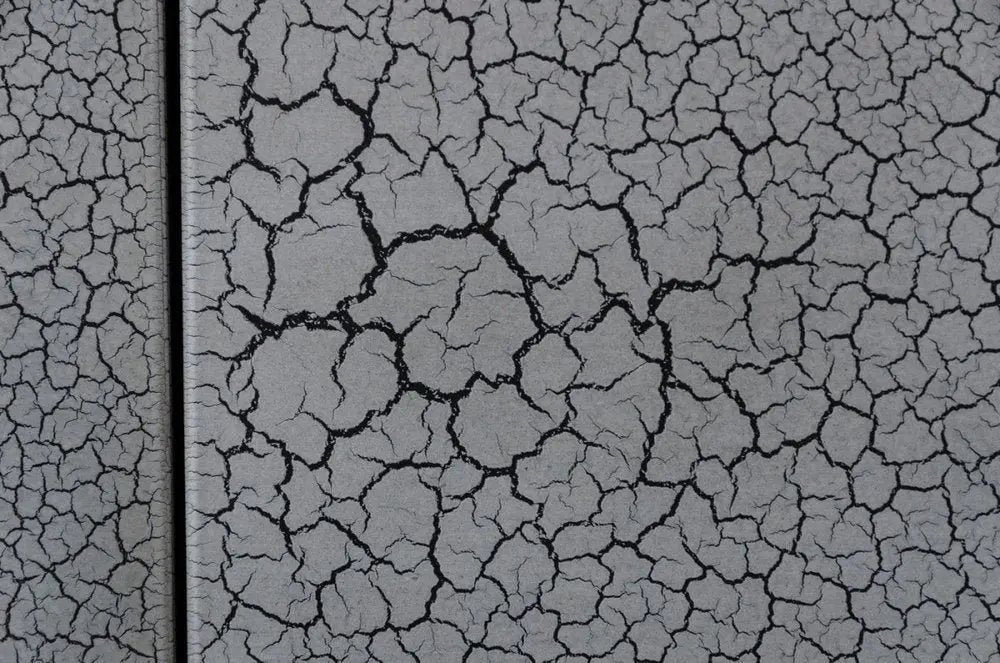 Cómoda doble de seis cajones con acabado craquelado en gris metalizado de 59"