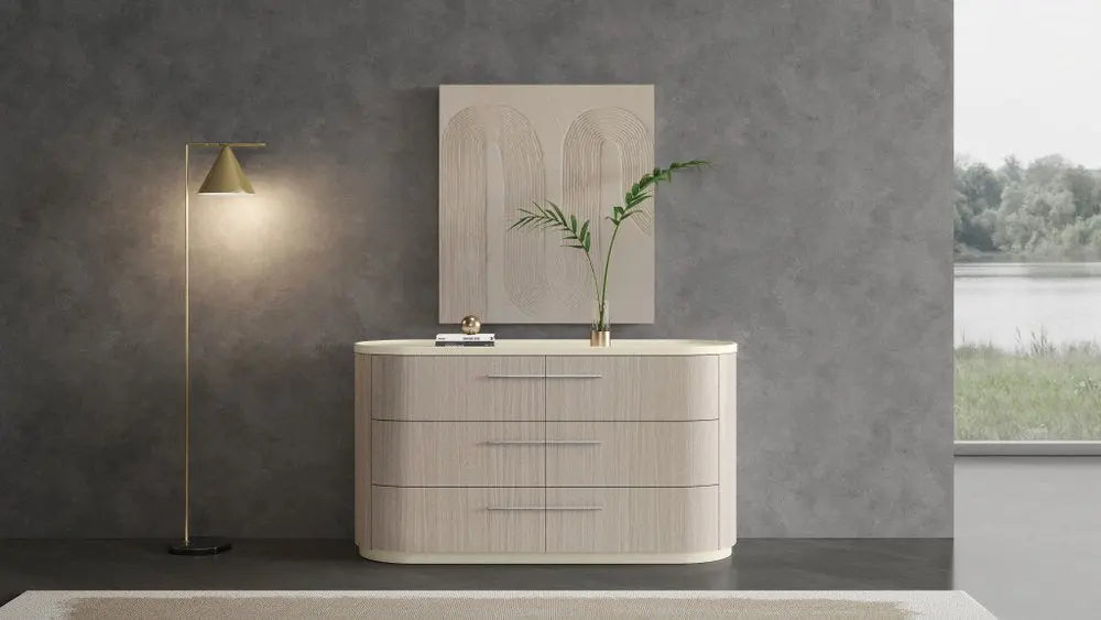 Cómoda doble de seis cajones de madera beige de 60"