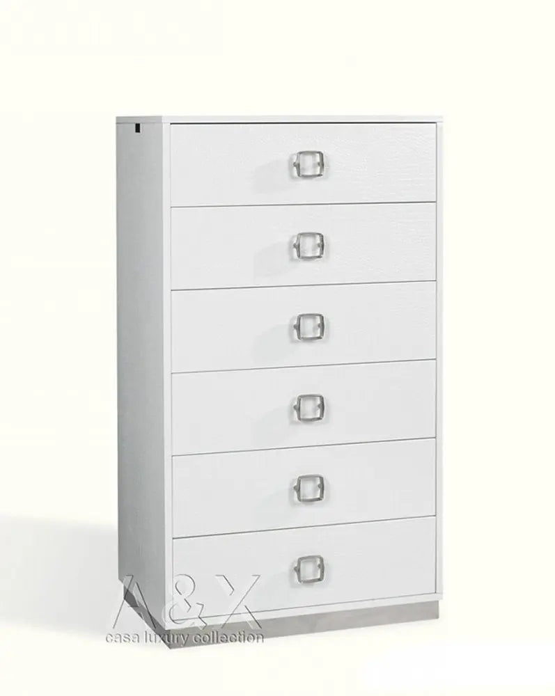 Cómoda doble de 63" con seis cajones en piel de cocodrilo sintética negra