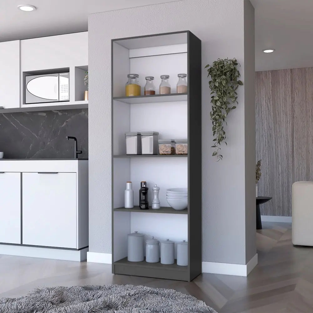 Librería de cuatro niveles de madera gris y blanca de 71"
