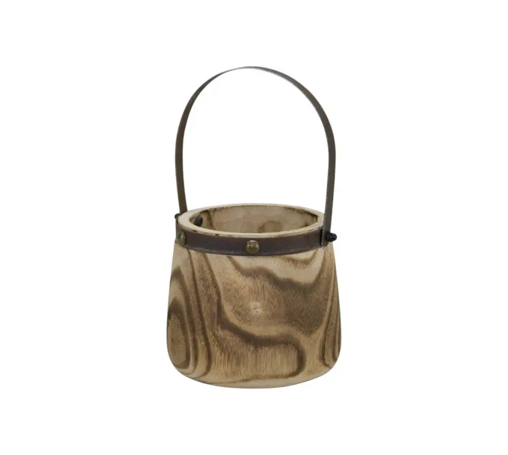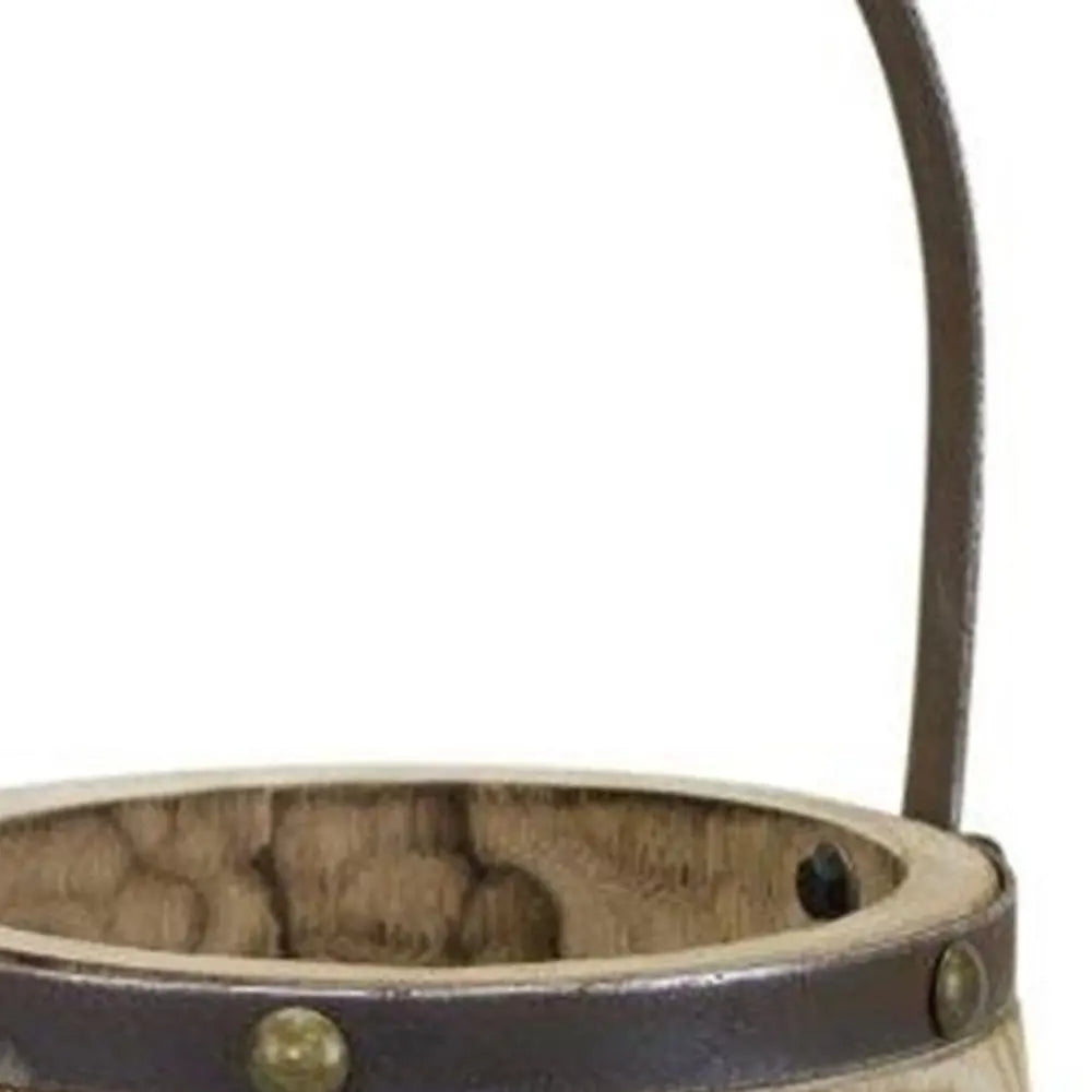Set of Two Brown Round Wood Table Vase - NOBLE HOME INTERIORS