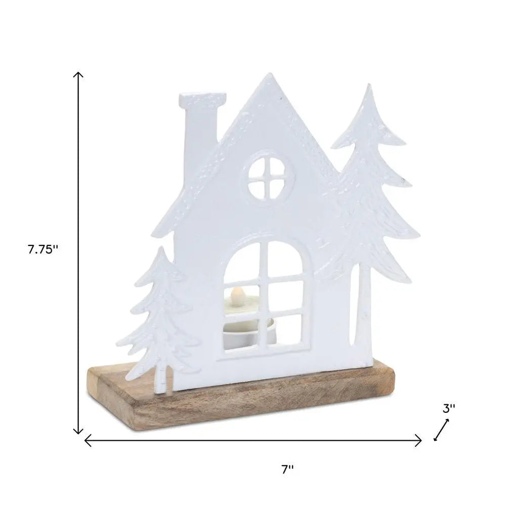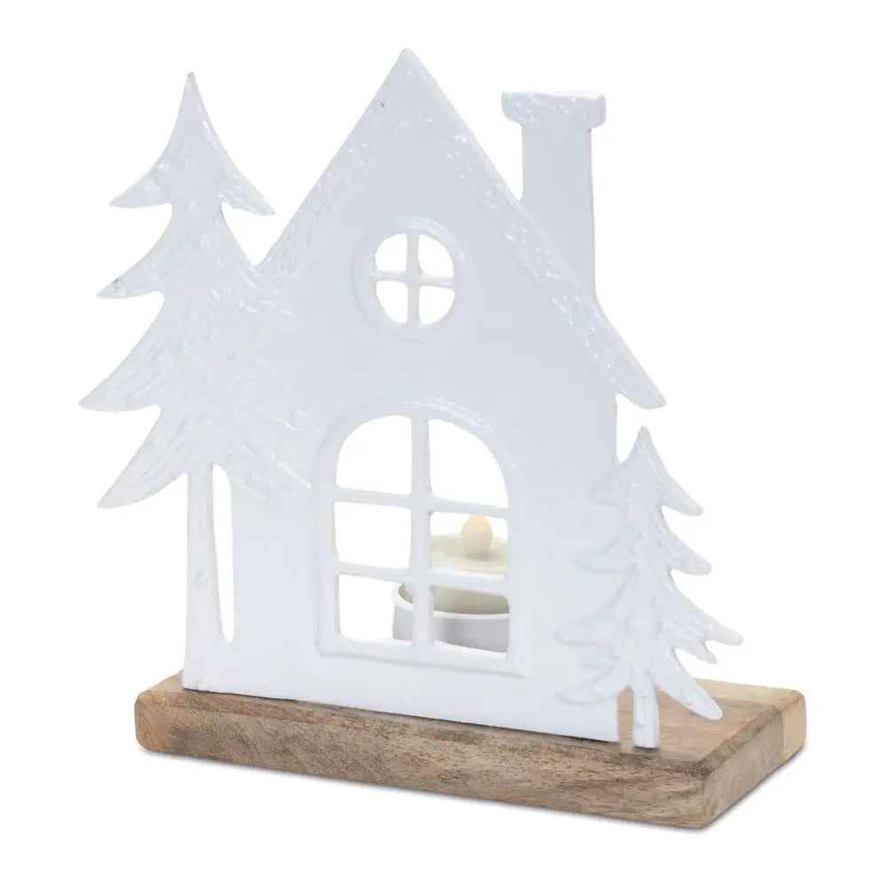 Juego de dos portavelas de mesa de aluminio abstracto en blanco y beige
