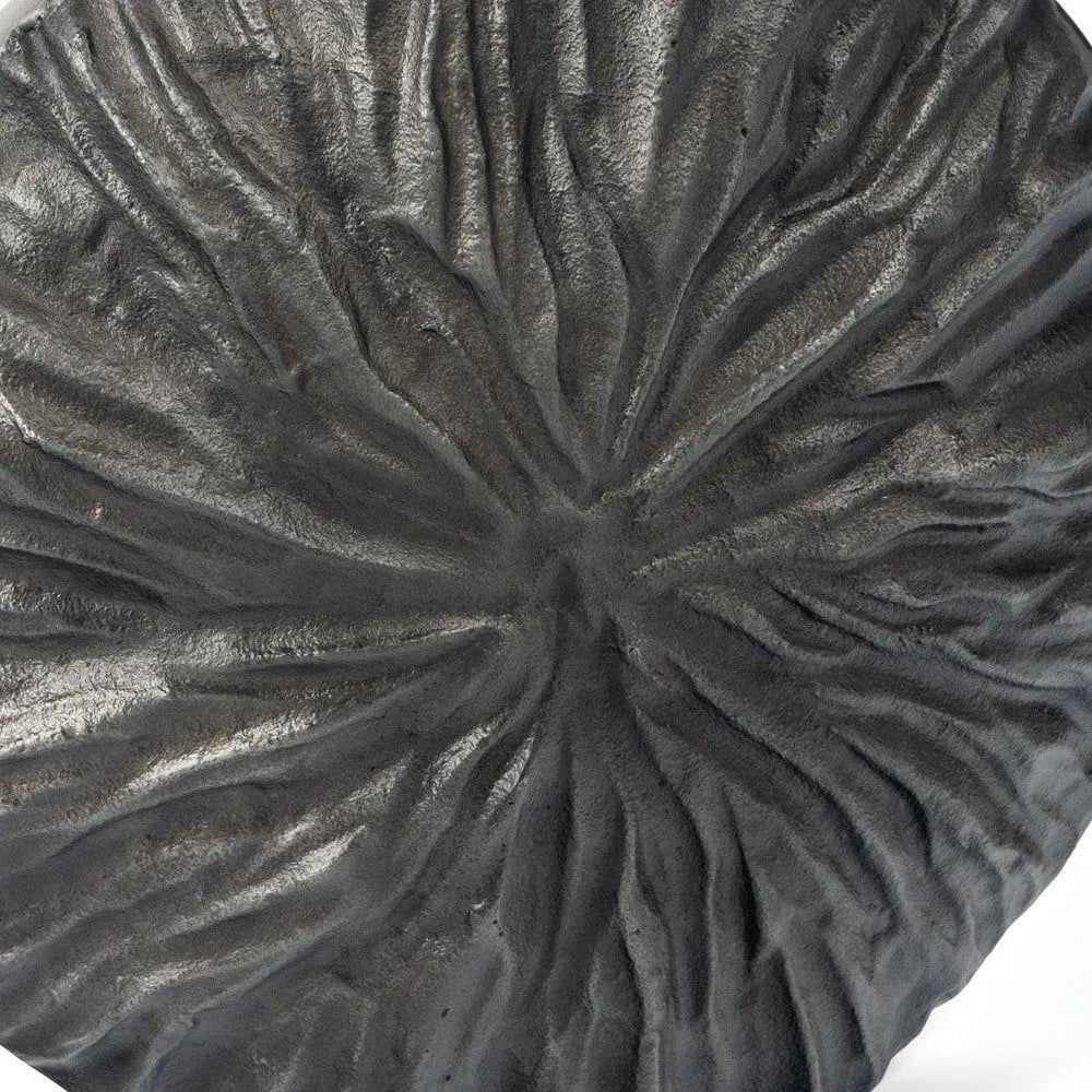 The 10-inch gray abstract aluminum table vase is a striking piece that enhances any interior space. Crafted from durable cast aluminum, this vase features a modern design that effortlessly complements contemporary decor. Its gray hue adds a touch of sophistication while the purposeful distressing technique gives it a unique character. Ideal for showcasing your favorite floral arrangements or as a standalone statement piece, this table vase is versatile and stylish. Whether placed on a mantel, side table, or dining area, it will surely catch the eye and elevate your aesthetic. Perfect for adding a touch of creativity to your living environment. 10-inch h x 11-inch w x 3-inch d.