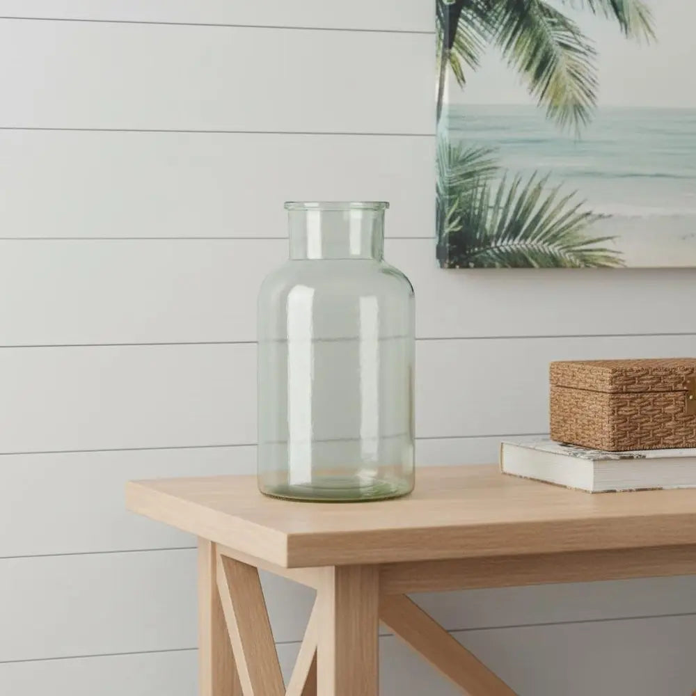 The 10-inch green round glass table vase is a perfect addition to any interior decor. Its round shape adds a touch of elegance, making it suitable for various styles. Crafted from high-quality glass, this vase beautifully showcases vibrant floral arrangements or can stand alone as a decorative piece. The island style enhances its aesthetic appeal, bringing a fresh and tropical vibe to your space. With its eye-catching green hue, this vase effortlessly complements any color scheme, creating a harmonious atmosphere in your home. Ideal for placement on a dining table, console, or coffee table, it is versatile enough to fit into any room. Elevate your decor with this stylish and functional table vase. 10.25-inch h x 5.5-inch w x 5.5-inch d.