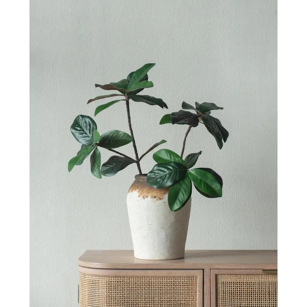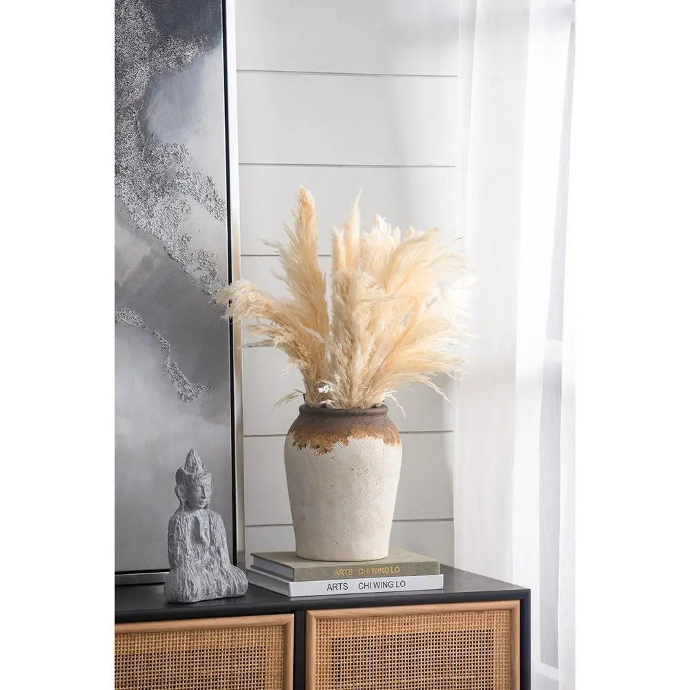 10" Ivory and Brown Ceramic Round Jug Vase