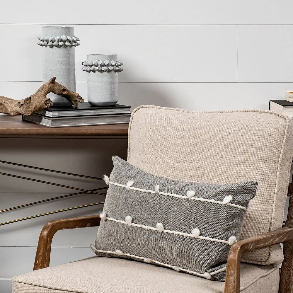 11" Gray Abstract Cylinder Ceramic Table Vase