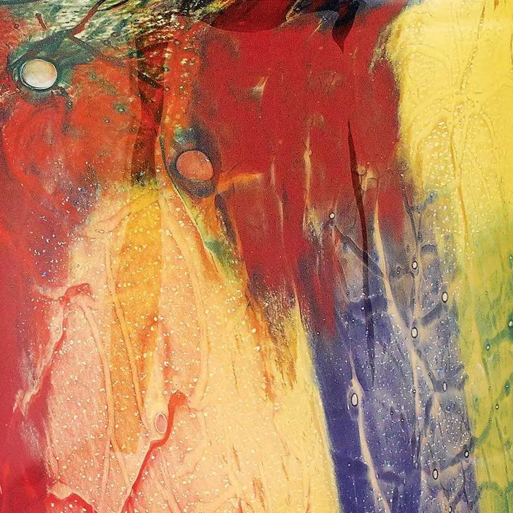 11"  Red Purple And Yellow Abstract Oval Murano Glass Table Vase HomeRoots