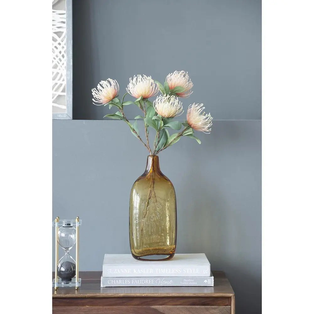 12" Amber Bud Glass Decorative Bottle - NOBLE HOME INTERIORS