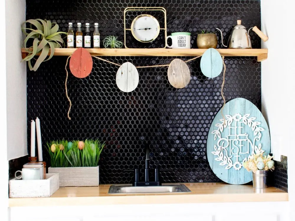 12" Farmhouse Turquoise Wooden Large Egg