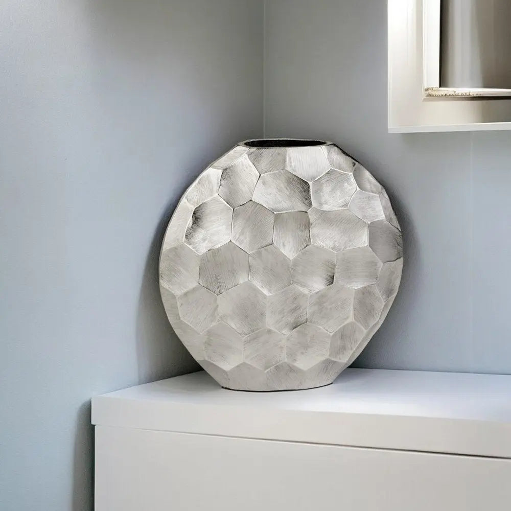 12" Silver Aluminum Cylinder Table Vase - NOBLE HOME INTERIORS
