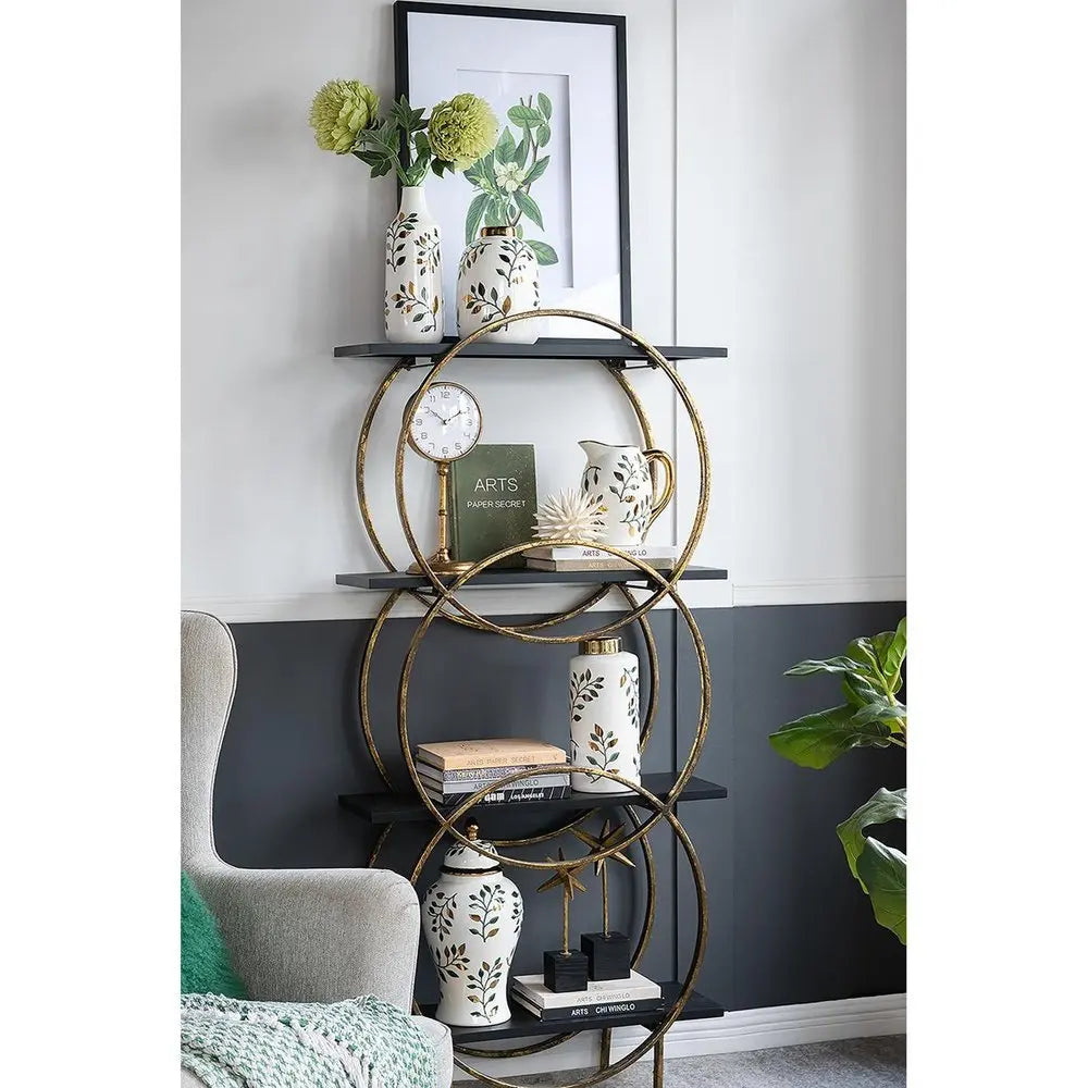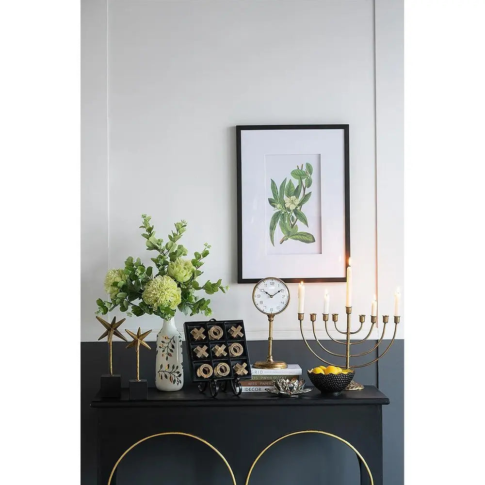 12" White Green And Gold Floral Leaf Bud Ceramic Table Vase