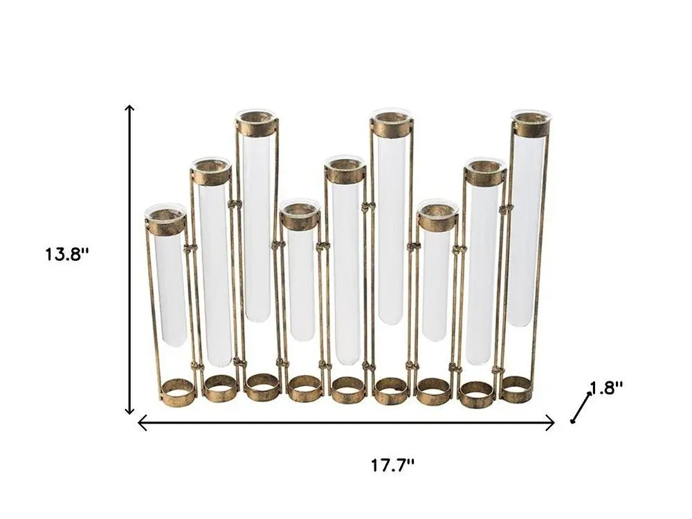 The 14-inch bronze tulip enameled cast iron table vase is a stunning addition to any home decor. Its elegant tulip shape adds a touch of sophistication, making it a perfect centerpiece for your dining or coffee table. Crafted from durable enameled cast iron, this vase combines beauty with practicality. The transitional style seamlessly blends with various decor themes, enhancing the overall aesthetic of your space. Whether filled with fresh flowers or displayed alone, this vase serves as a striking statement piece. Its rich bronze finish brings warmth and character, elevating your interior design effortlessly. Ideal for both modern and traditional settings, this table vase is sure to impress guests and complement your unique style. 13.8-inch h x 17.7-inch w x 1.8-inch d.
