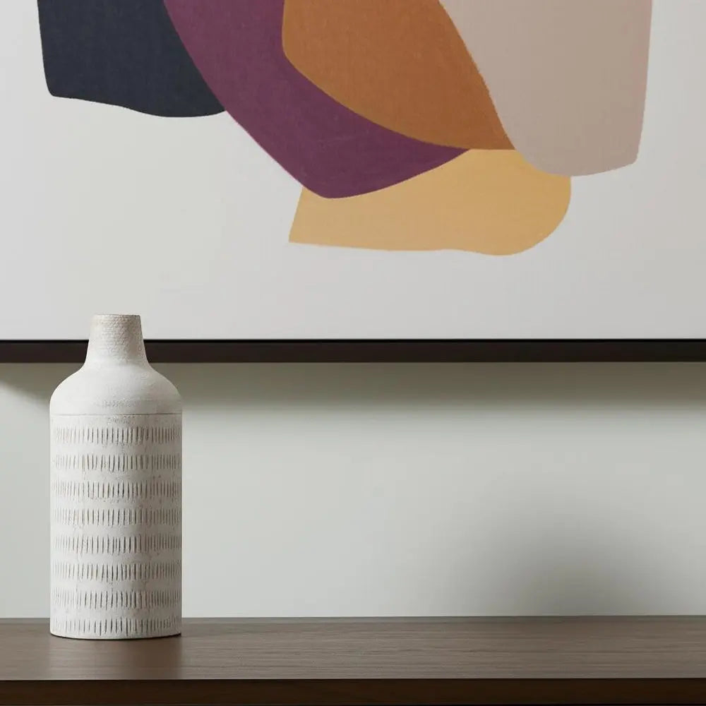 14" Off White And Natural Geometric Metal Cylinder Table Vase