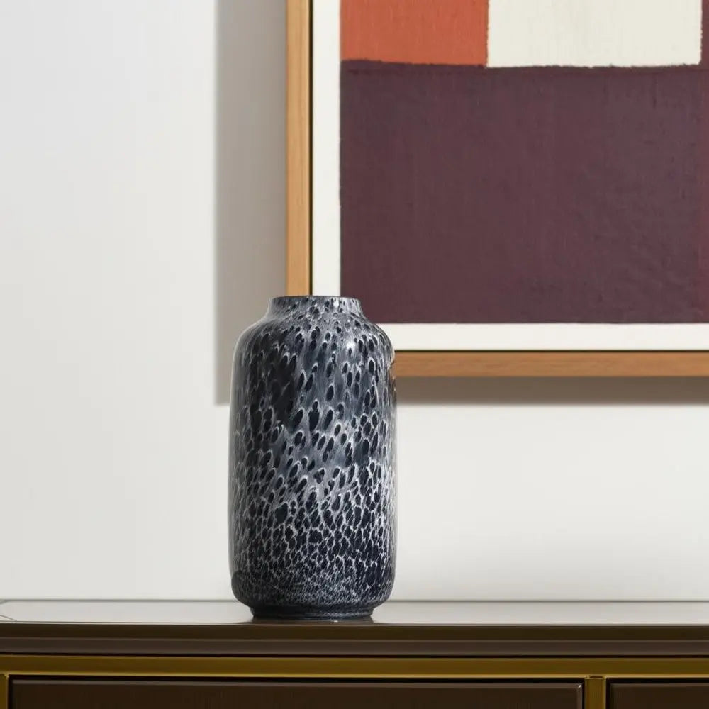 15" Black Mottled Cylinder Glass Table Vase
