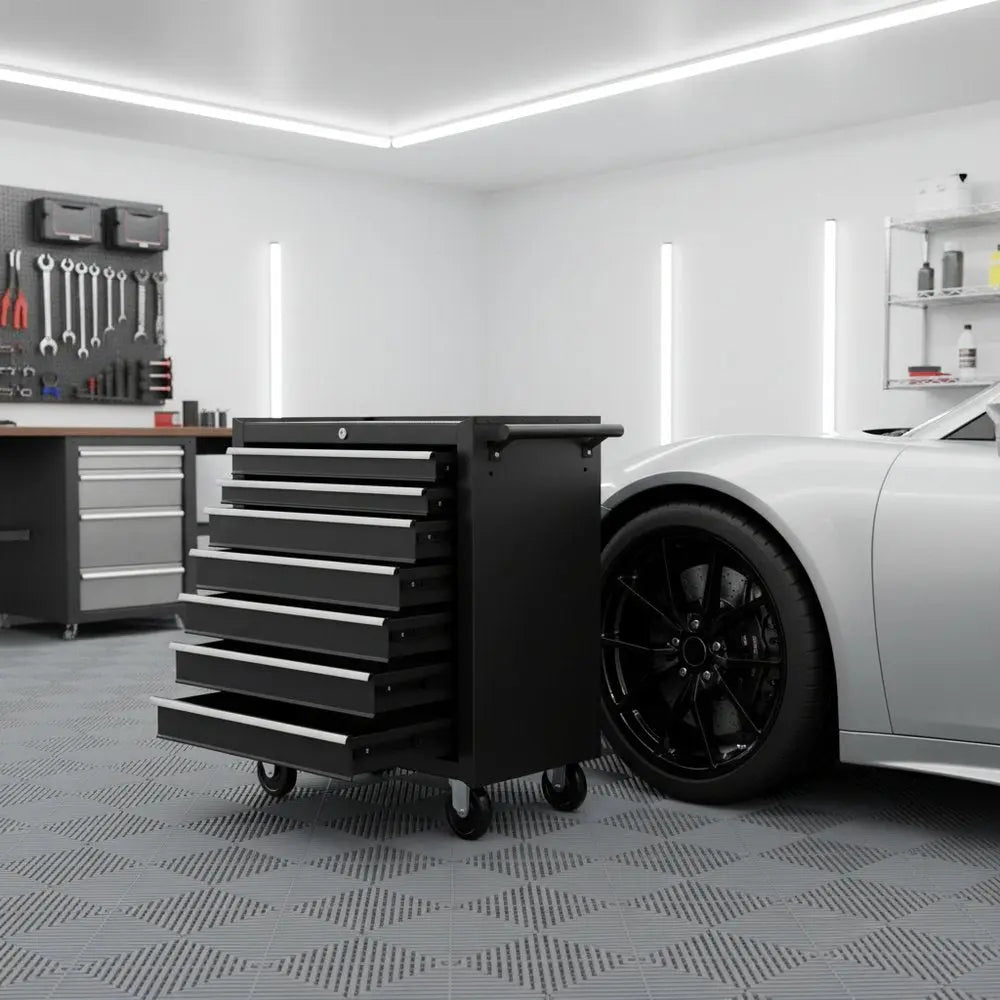 15" Black Multi-Tier Steel Rolling Cabinet With Lid