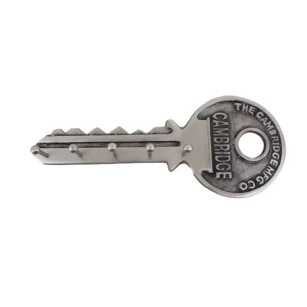 The 16-inch silver five hook wall mount key shaped coat rack is a stylish and functional addition to your home. Designed with five sturdy hooks, it provides ample space for organizing coats, hats, bags and keys in your hallway, kitchen, laundry room or garage. The rustic style with a purposefully distressed and antiqued silver finish adds a charming touch to your decor. These hooks easily mount on the wall, saving valuable floor space and creating a neat environment. Perfect for small entryways or busy family areas, it effortlessly combines practicality with aesthetic charm. 6.25-inch h x 15.75-inch w x 2.5-inch d.