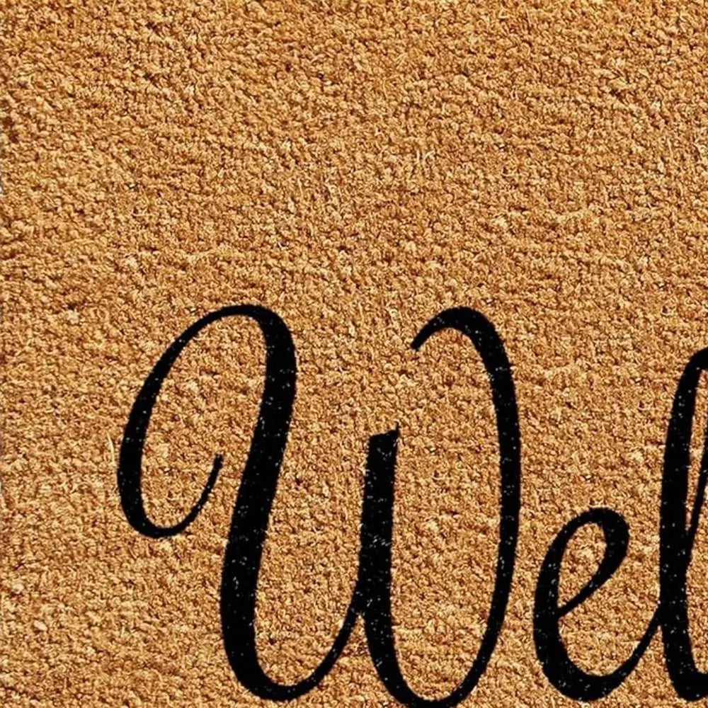 17" X 29" Natural And Black Pineapple Welcome Outdoor Coir Door Mat
