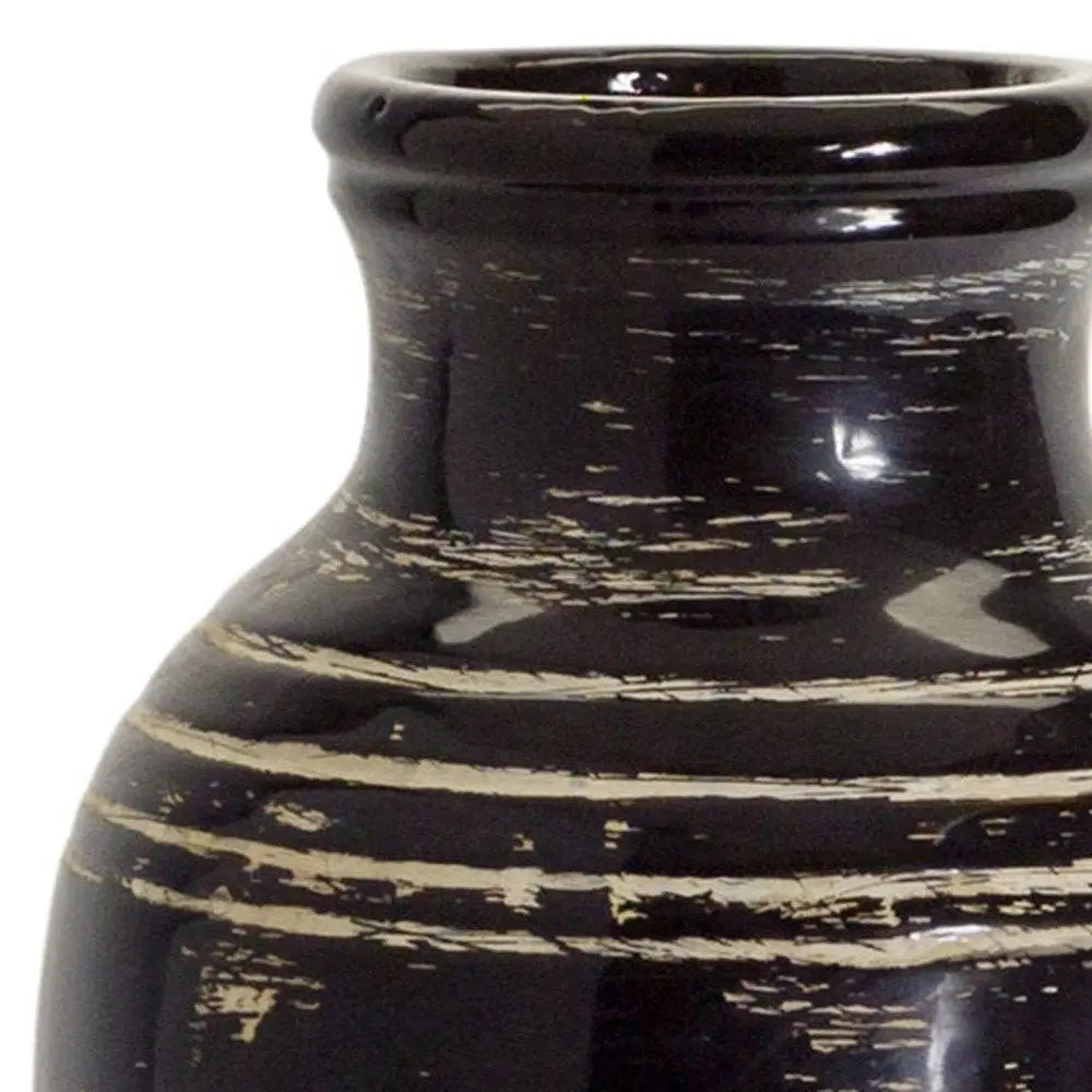 18" Black and Ivory Striped Urn Ceramic Floor Vase