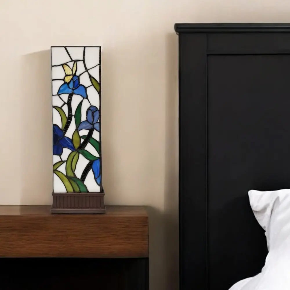 18" Tiffany Style Floral Dark Brown Base Table Lamp
