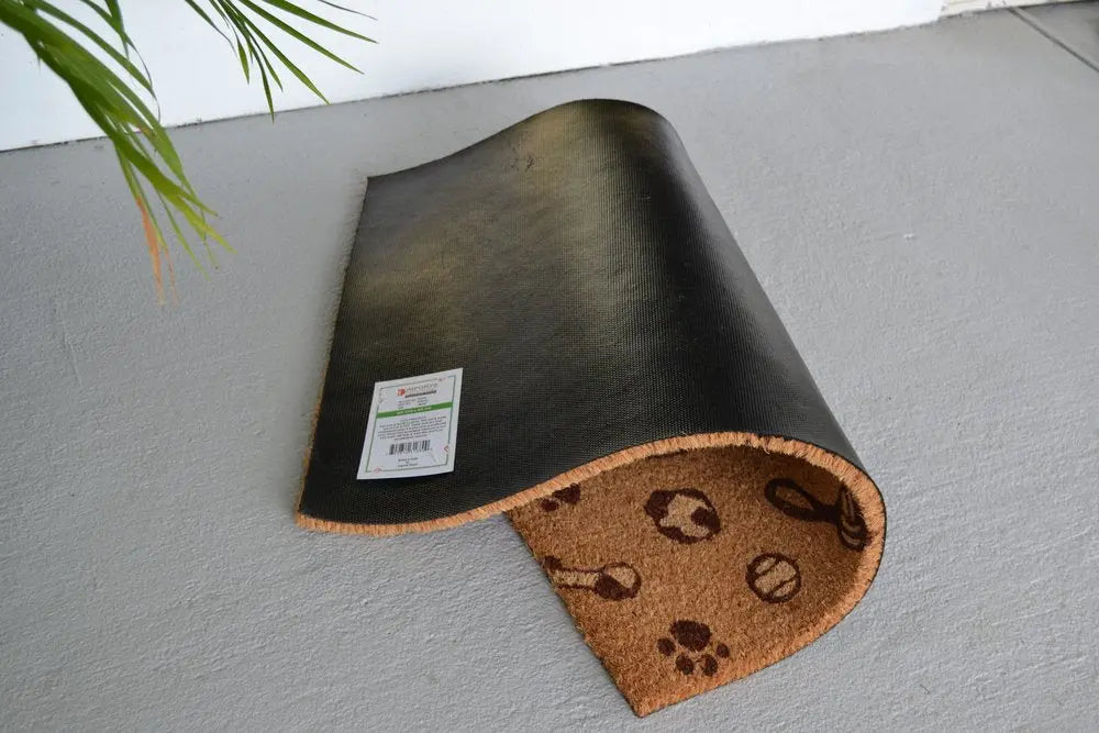 18" X 30" Beige and White Coir Dog Outdoor Door Mat