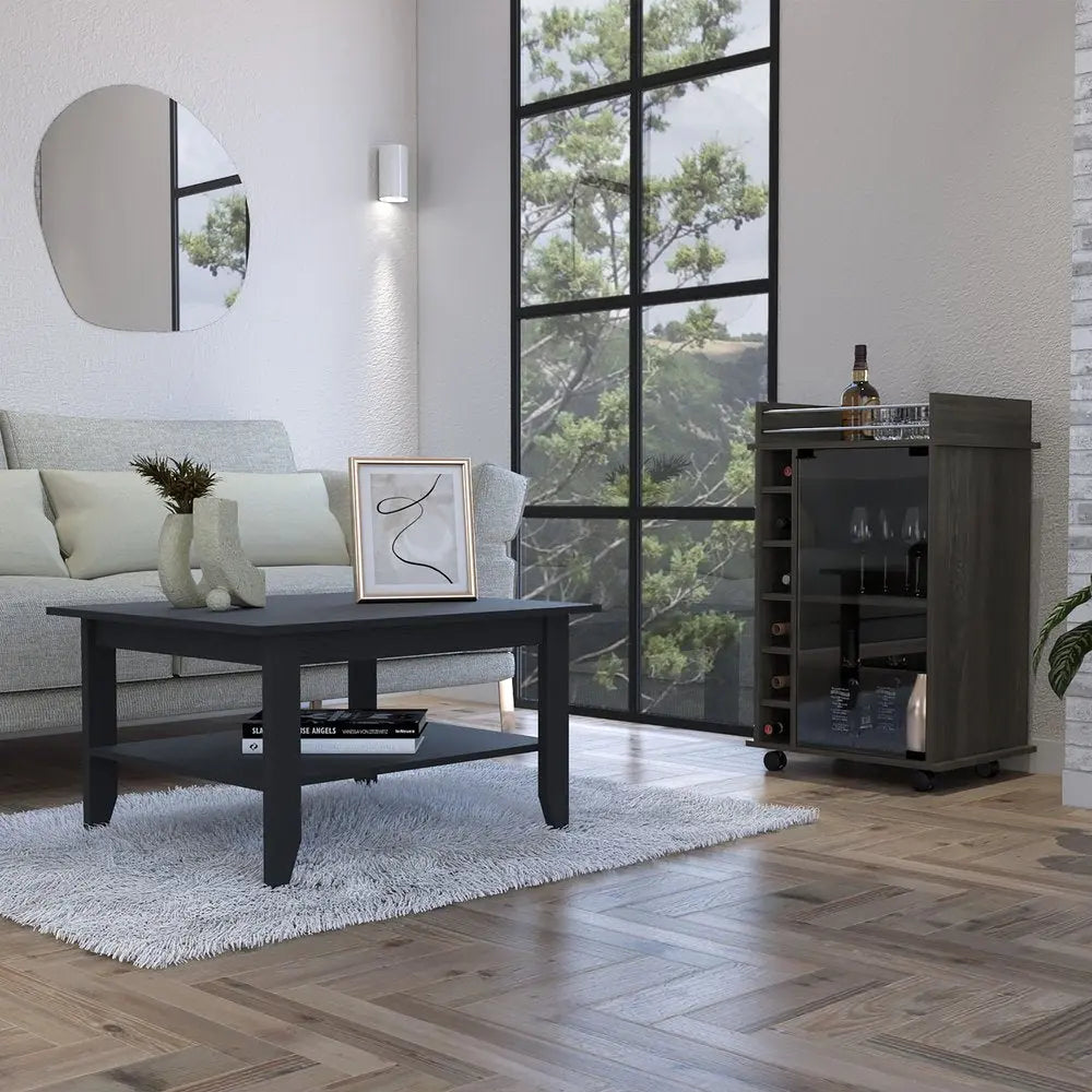 22" Brown and Black Open shelving Bar Cart and Coffee Table