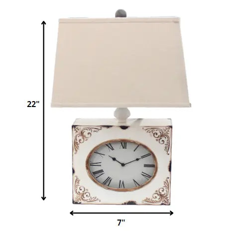 22" Distressed Red Metal Bedside Lamp With Beige Shade