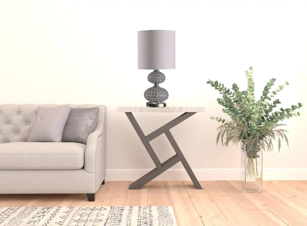 24" Chrome and Faux Crystal Double Orb Table Lamp With White Classic Drum Shade