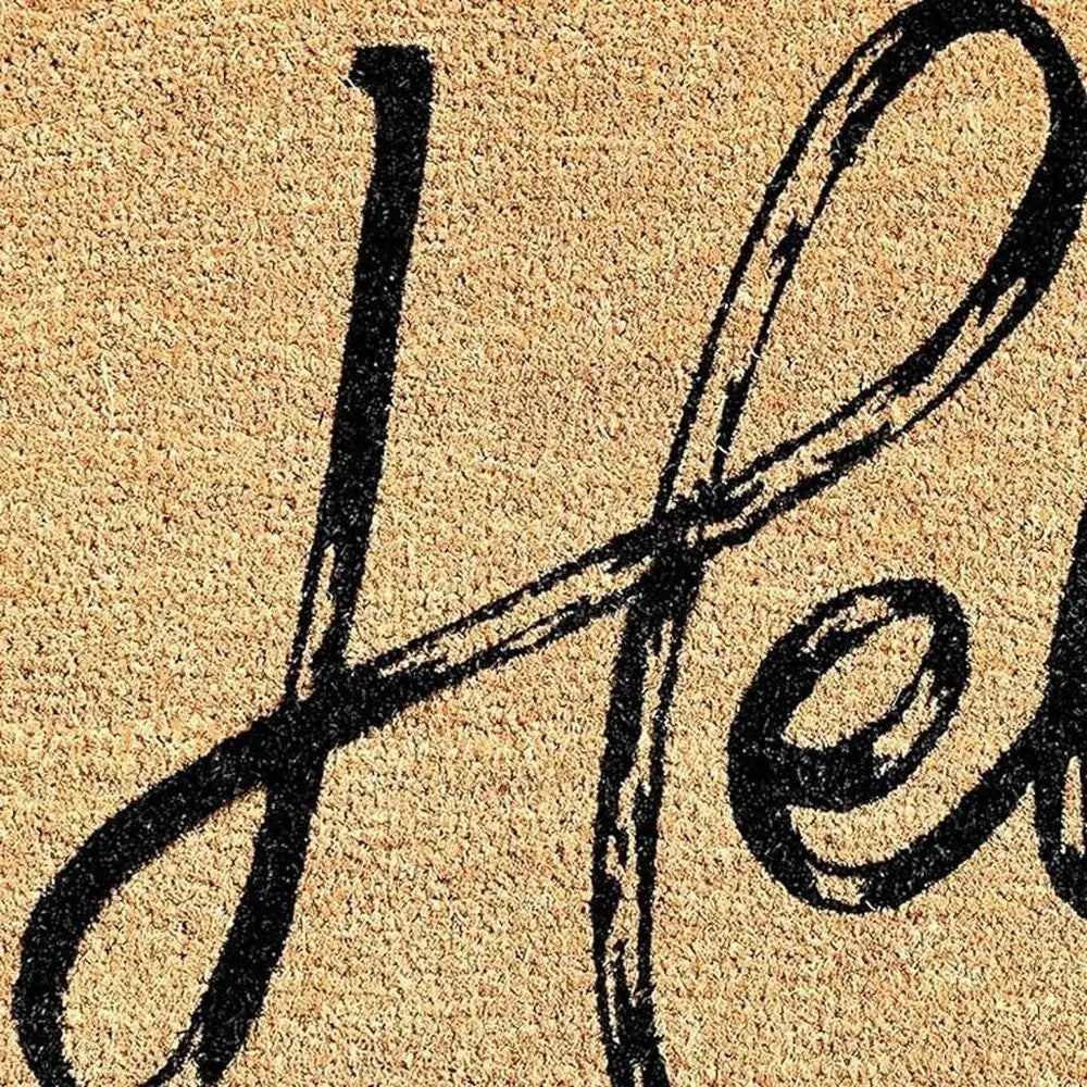 24" X 36" Natural And Black Hello Distressed Outdoor Coir Door Mat