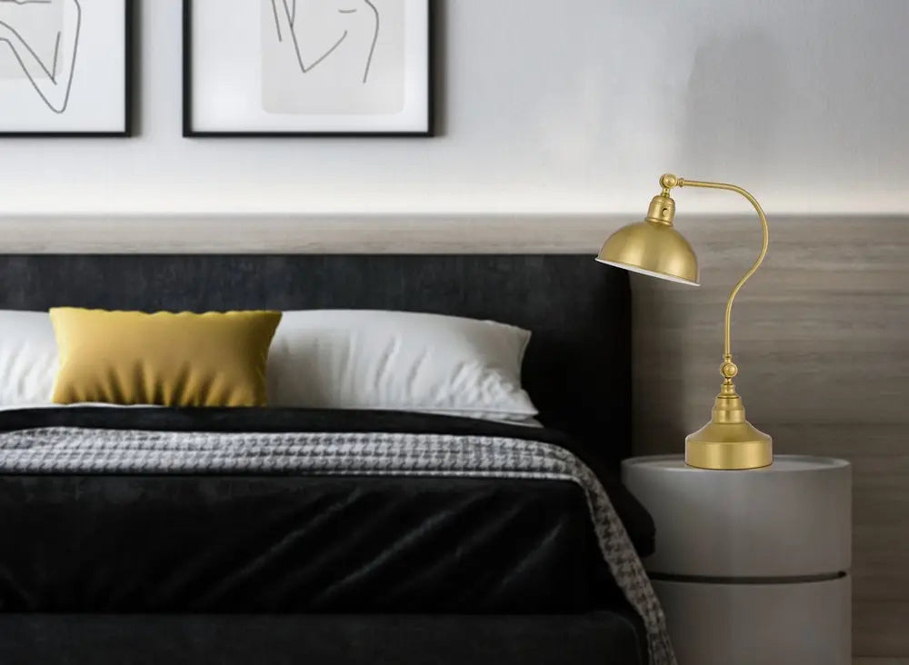 25" Antiqued Brass Metal Lantern Desk Lamp With Antiqued Brass Dome Shade