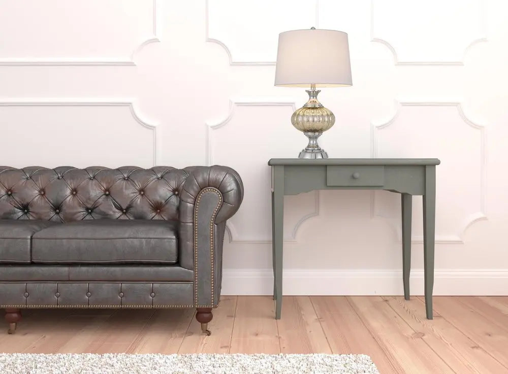 27" Silver Metallic Metal Table Lamp With White Empire Shade