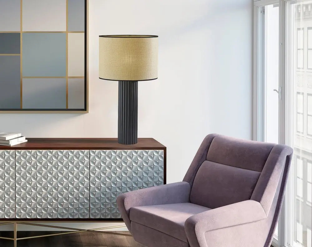 29" Black Ceramic Cylinder Table Lamp With Beige Drum Shade