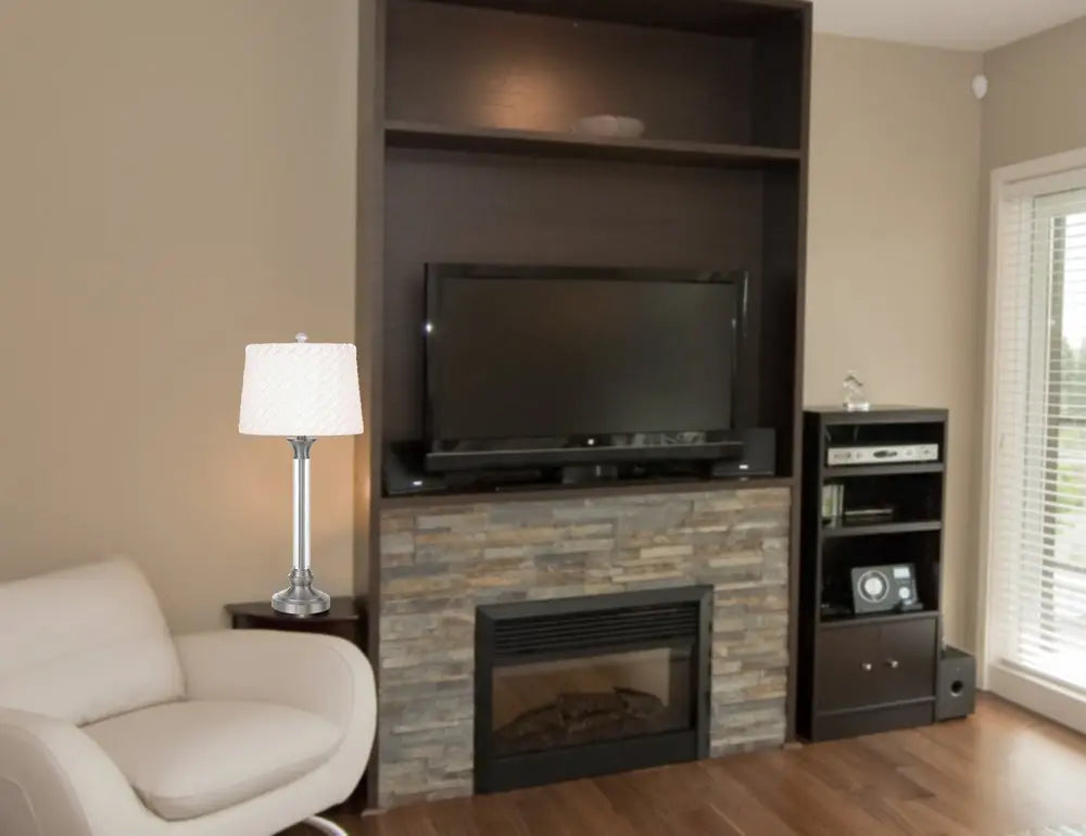 32" Nickel Metal Table Lamp With White Empire Shade