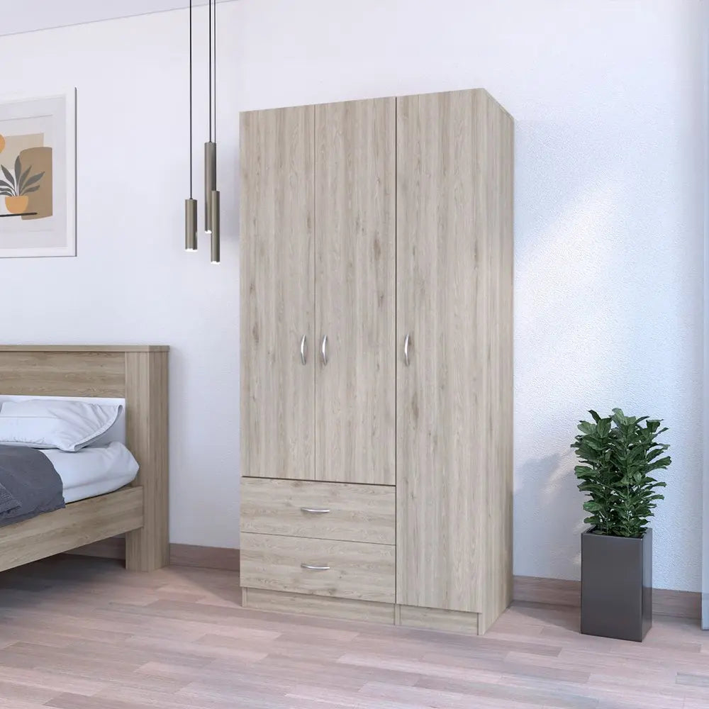 This 35-inch light gray two drawer combo dresser is a practical and good looking accent for your bedroom storage and organizational needs. This combo dresser gives you the added bonus of both drawer storage and cabinet storage to accommodate various sizes and types of items. Its a high quality piece, made from high grade manufactured wood. 70.8-inch H x 35.4-inch W x 18.5-inch D