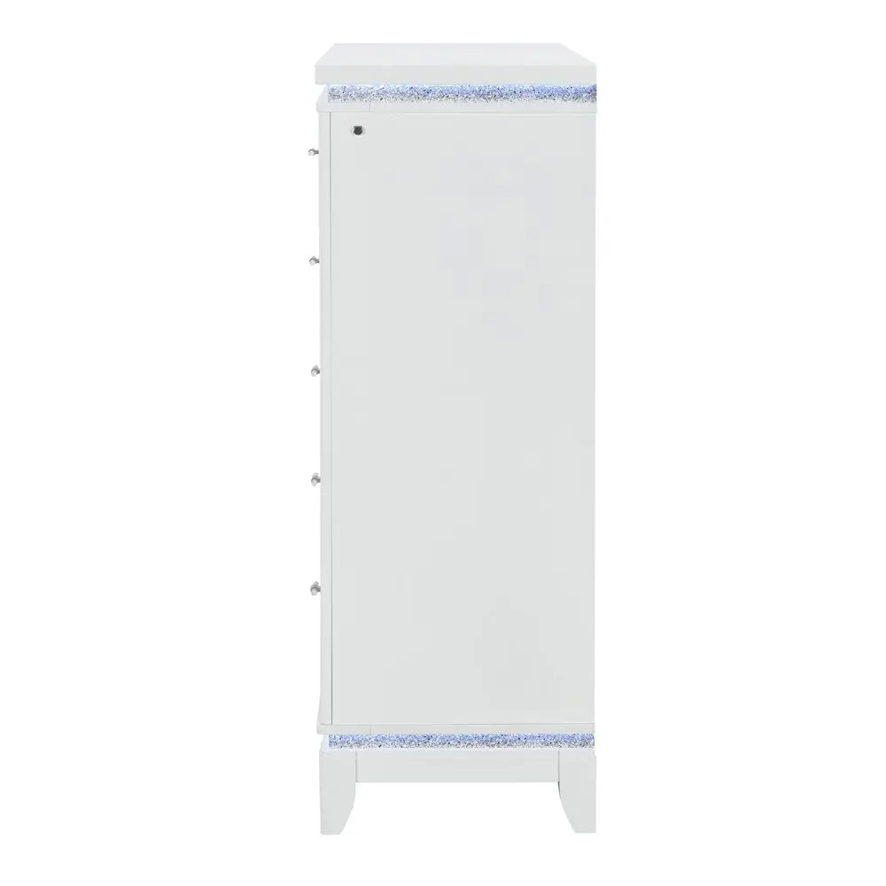 36" White Faux Crystal Glitter Wood Lighted Five Drawer Dresser