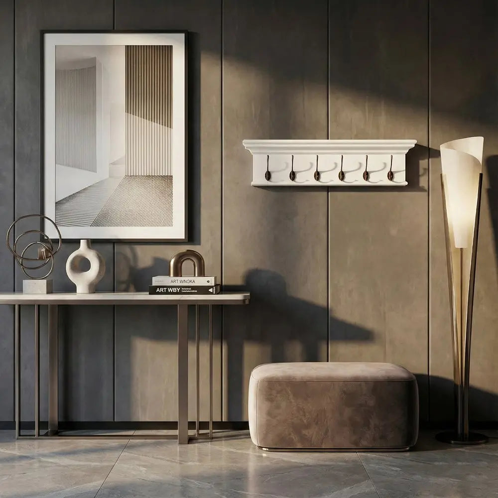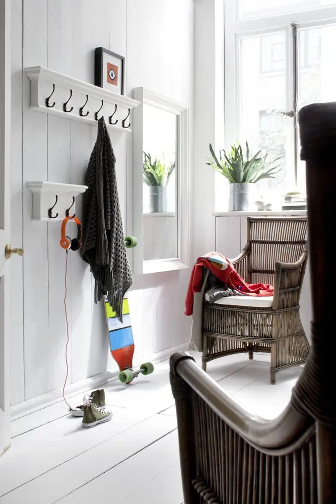 39" Classic White Wood Six Hook Hanging Coat Rack
