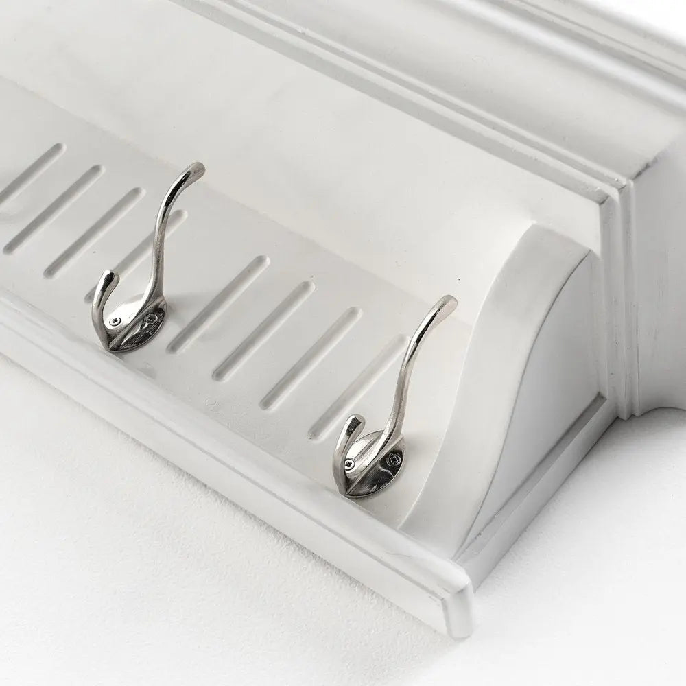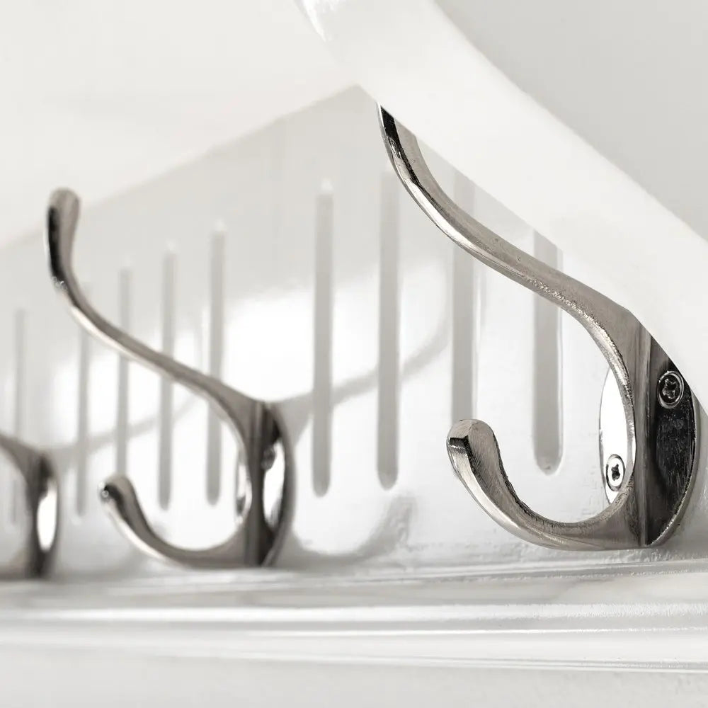 39" White Solid Wood Six Hook Wall Mount Coat Rack