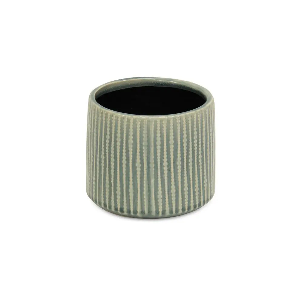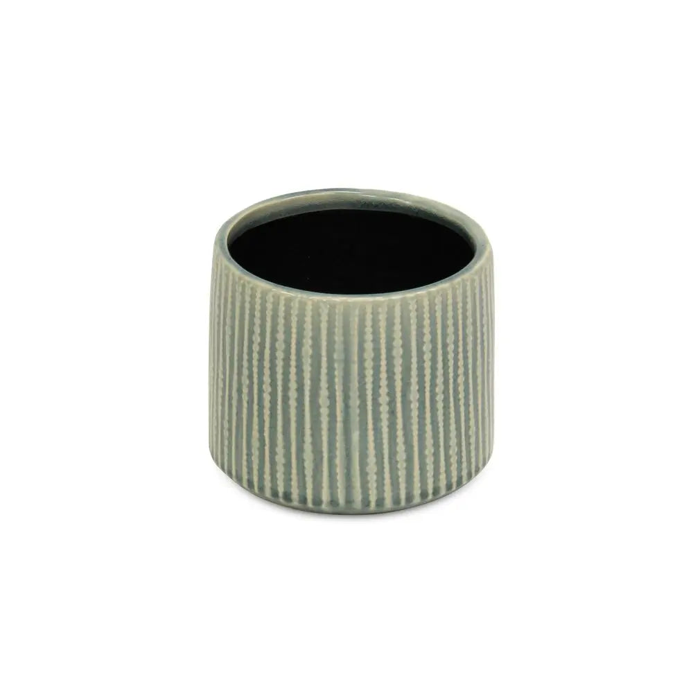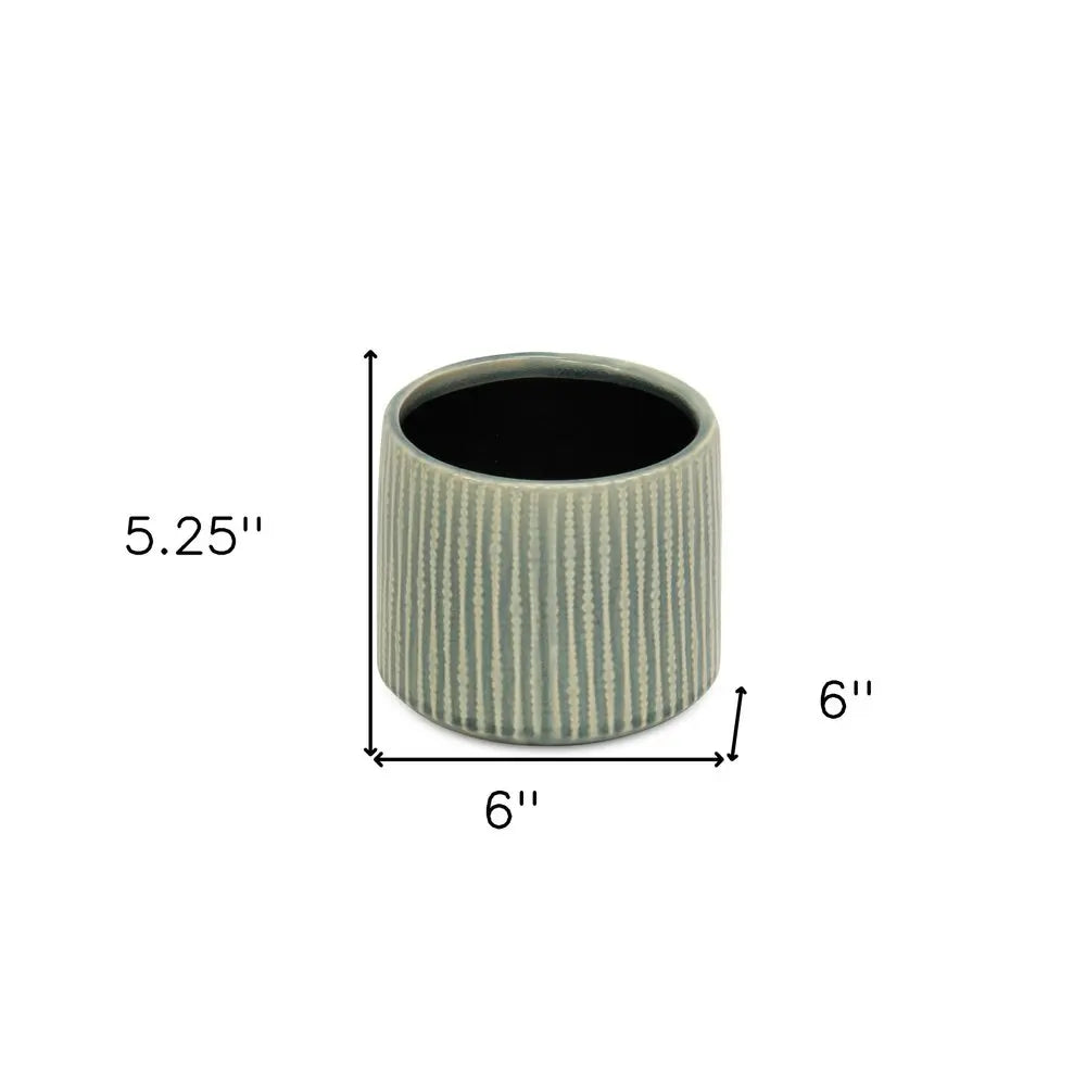 6" Green Striped Ceramic Indoor Outdoor Round Pot Planter