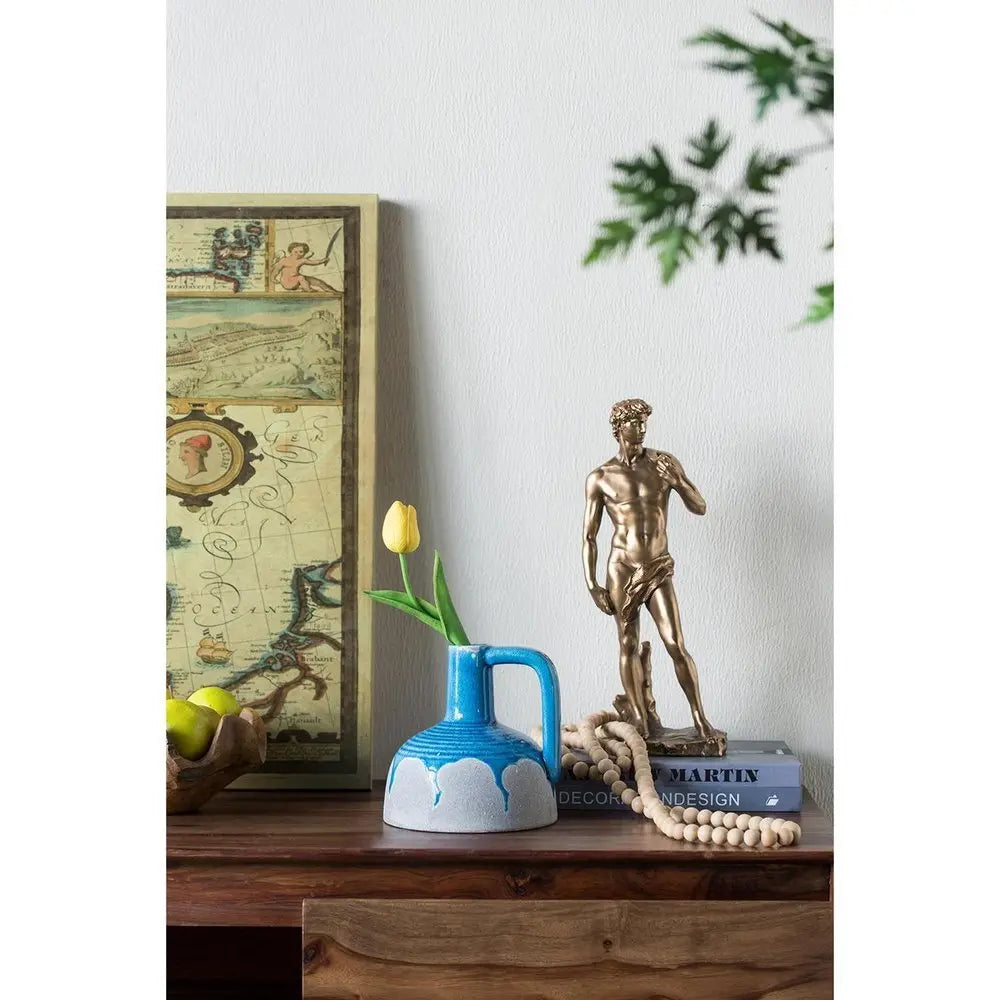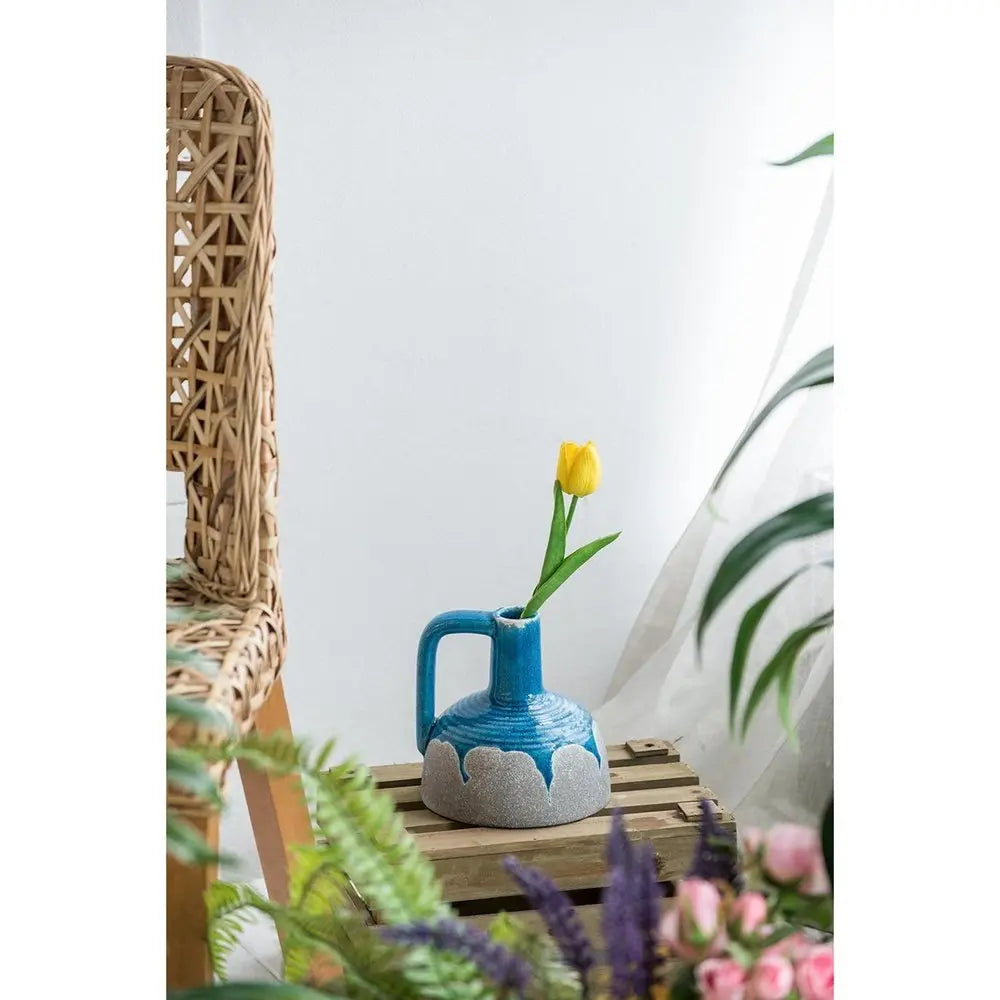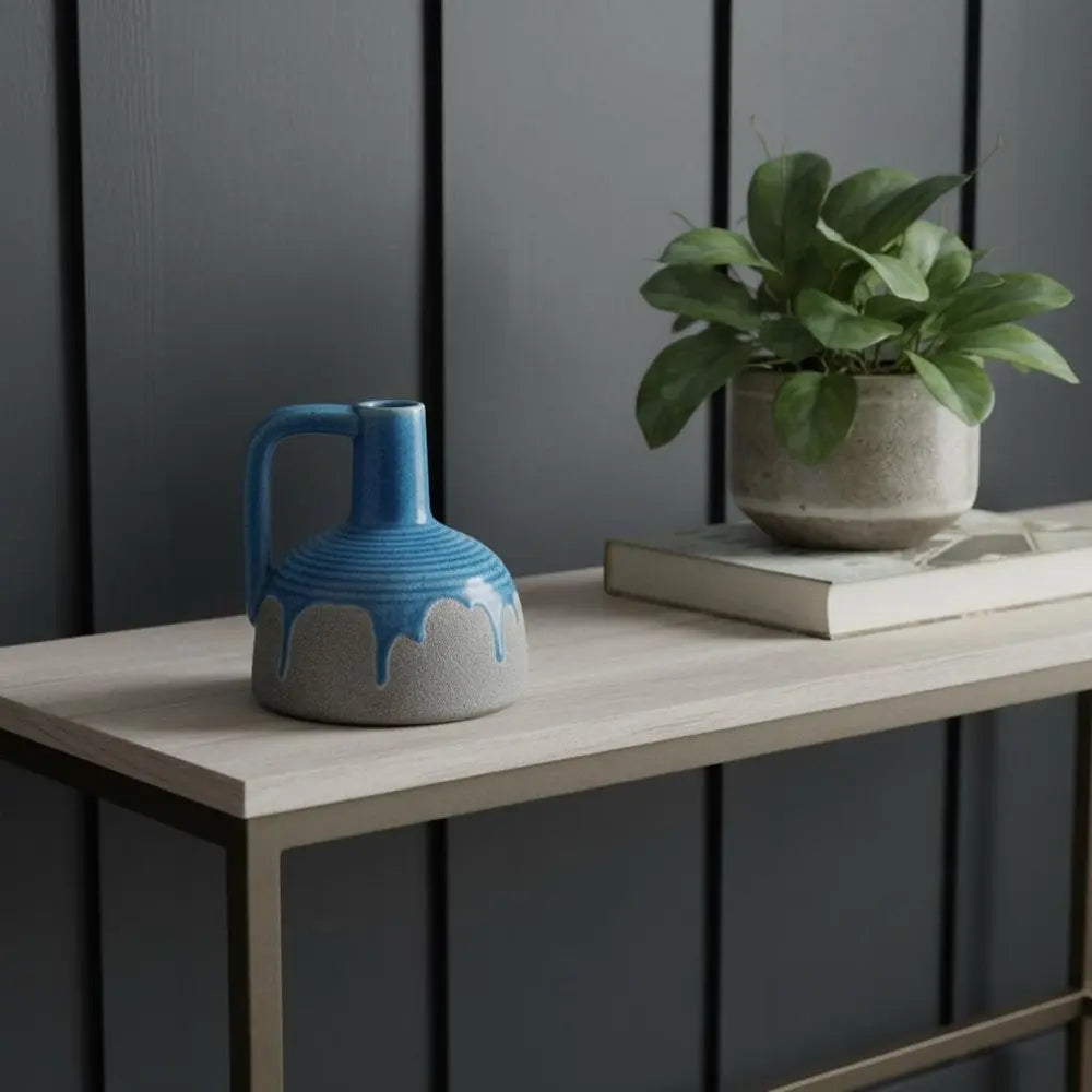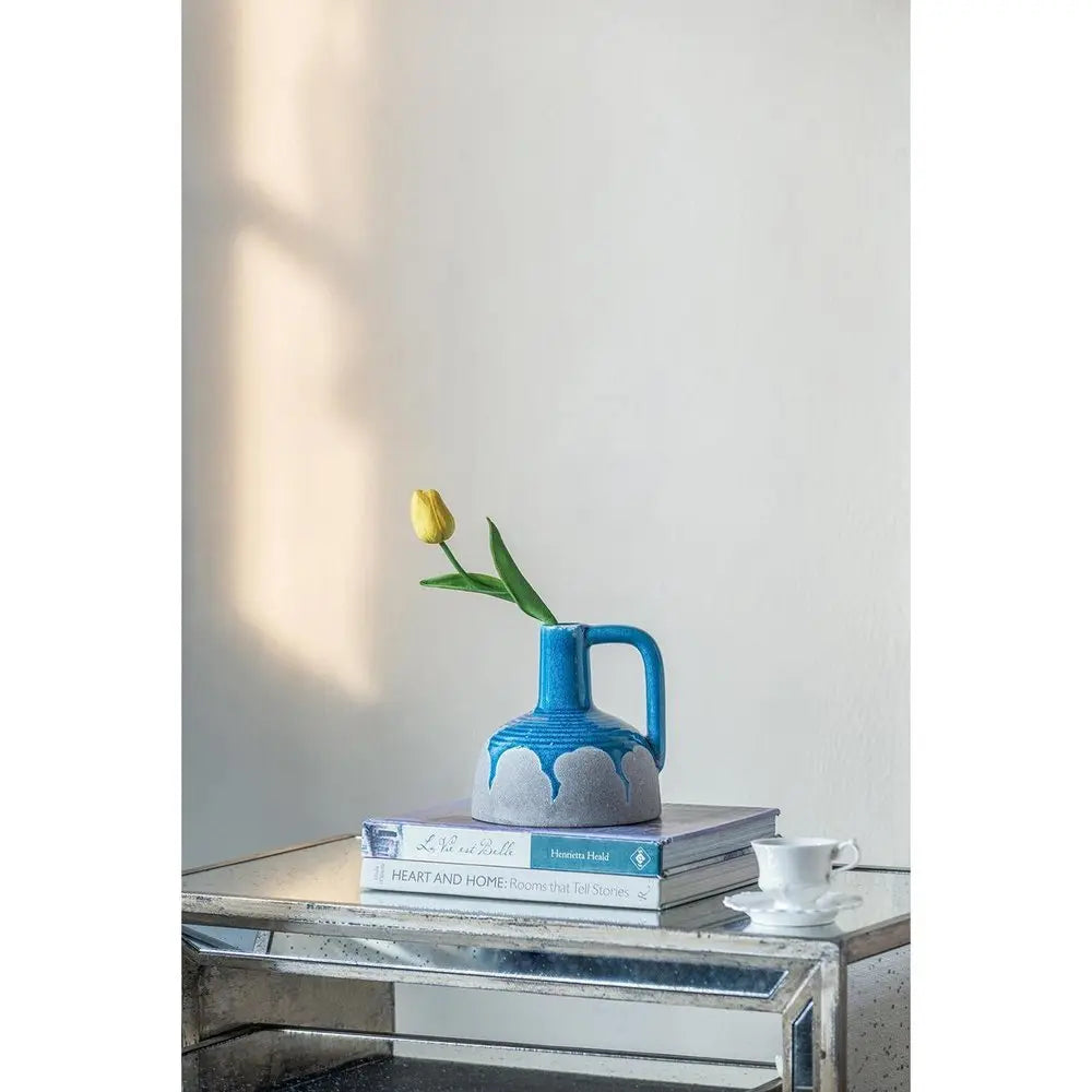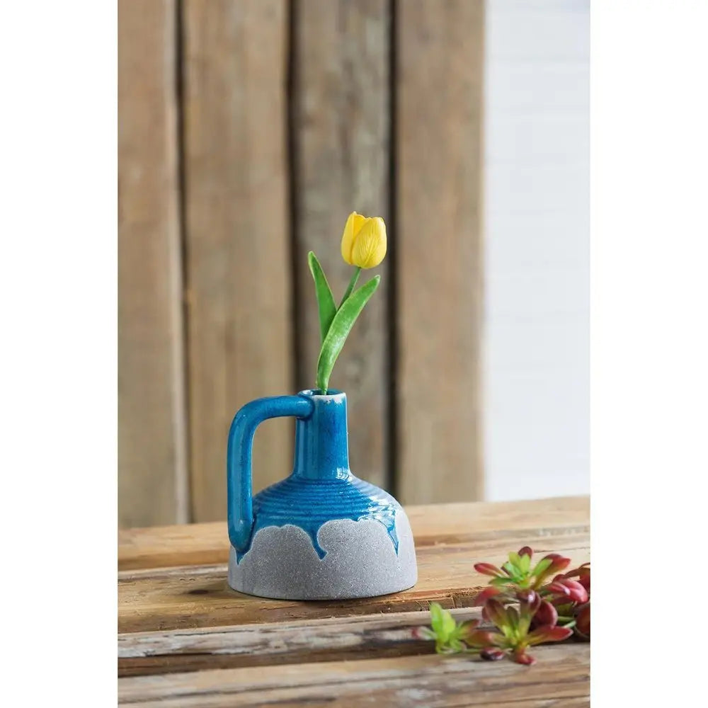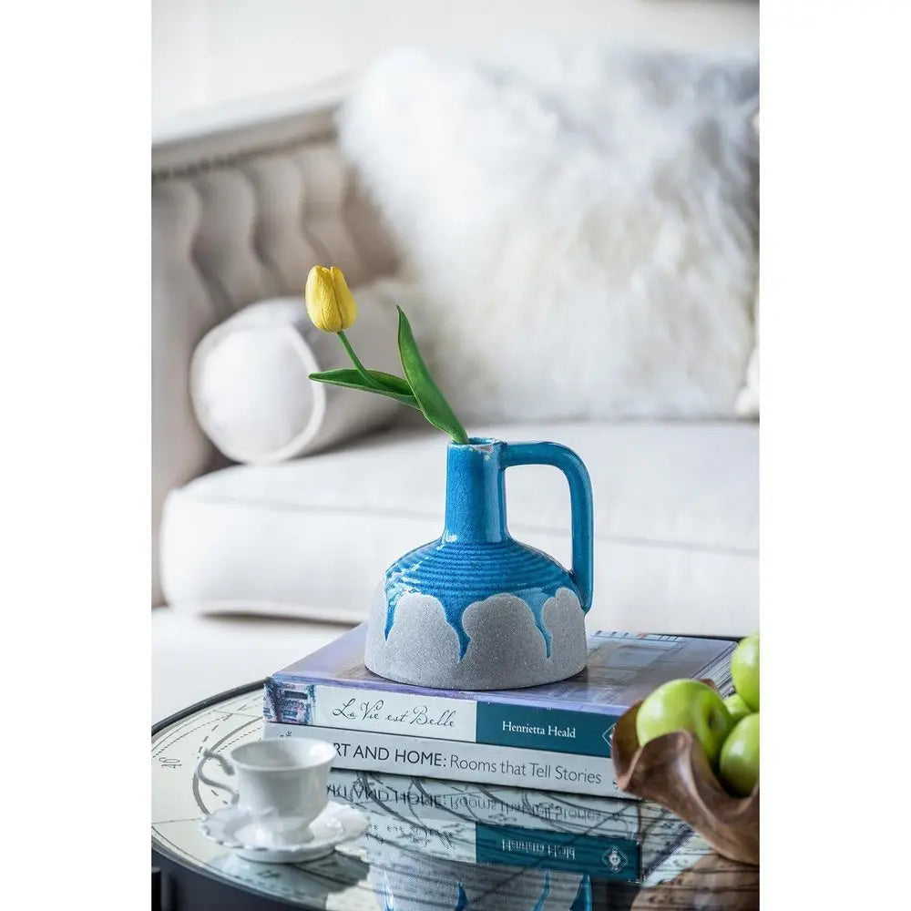 7" Blue and Gray Bud Ceramic Jug Vase With Does Not Apply - NOBLE HOME INTERIORS