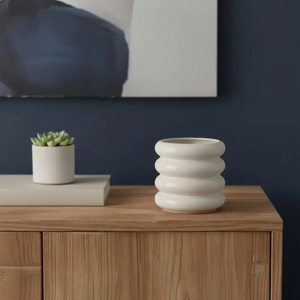 7" Cream Cylinder Rings Ceramic Table Vase