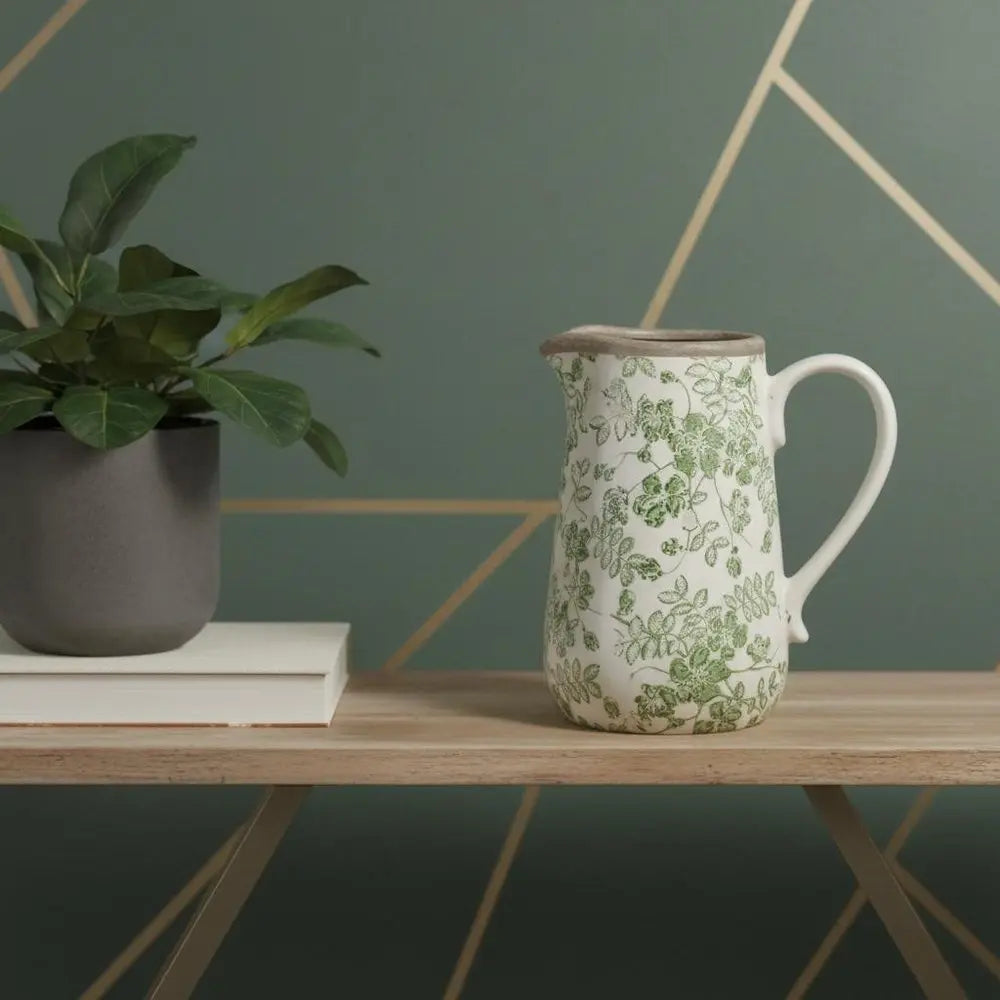 7" Green and White Leaf Round Ceramic Jug Vase With Does Not Apply - NOBLE HOME INTERIORS