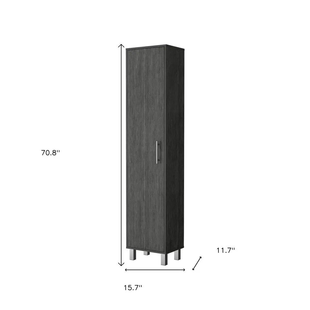 Add a fashionable storage option to your space with this 71-inch gray wood accent cabinet with single door. This beautiful accent is made from sturdy mdf that is built to last. Storage vessels can be both functional and stylish. Increase your storage space and the fashion quotient of your room with this hard wearing, versatile, and good looking cabinet. 70.80-inch h x 15.70-inch w x 11.70-inch d.