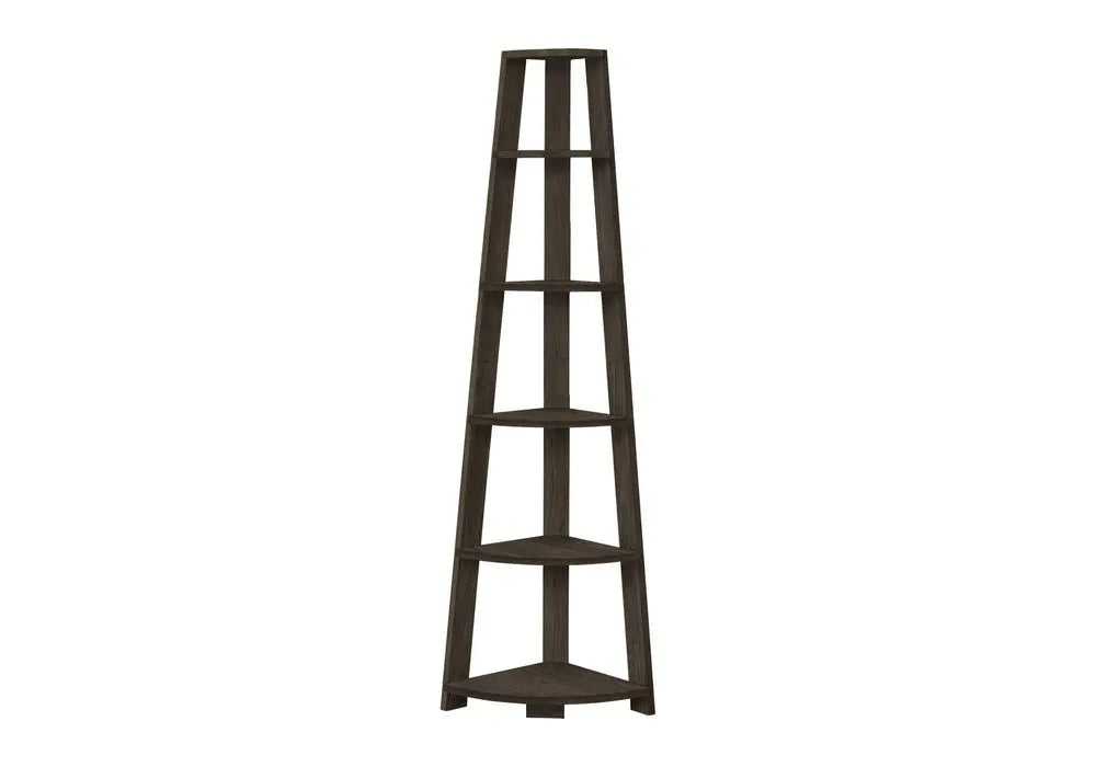 71" Oak Particle Board and Wood Five Tier Corner Bookcase - NOBLE HOME INTERIORS