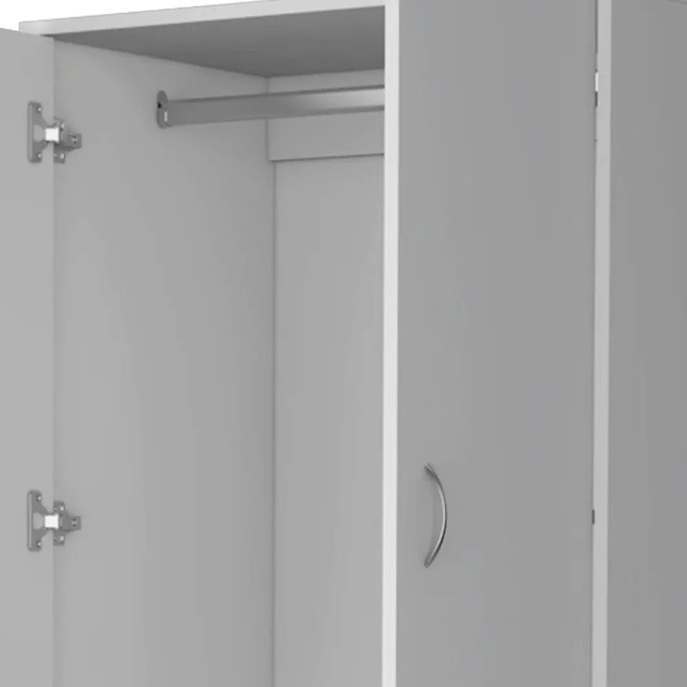 Add personality to your bedroom style and a feeling of coziness with this 71-inch white two door two drawer drawer combo dresser. Versatile in use, this combo dresser is equipped with both drawers and doors for all your storage needs. Its a high quality piece, made from high grade manufactured wood. The white coloration of this piece is neutral and will blend easily with most any decor. 70.9-inch h x 30.9-inch w x 19-inch d.