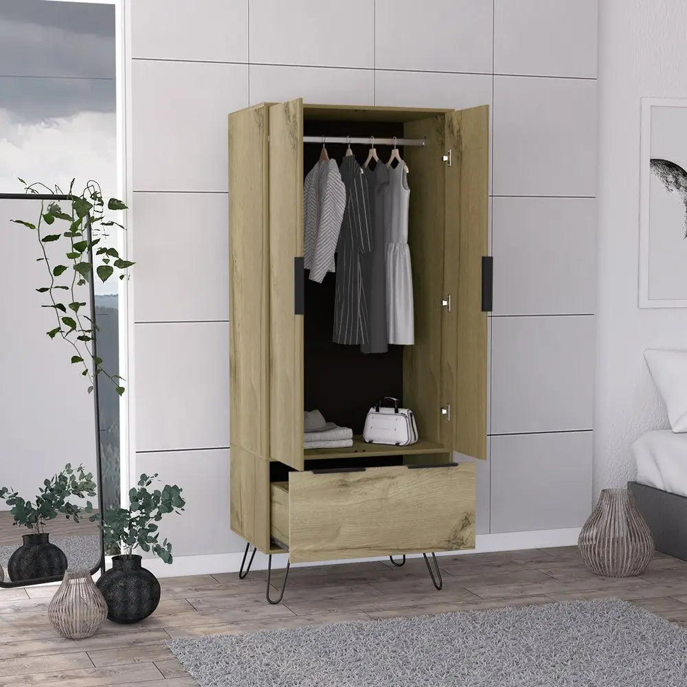 Enhance your room into a visually delightful and highly functional space with this 74-inch oak wood two door single drawer combo dresser. This combo dresser gives you the added bonus of both drawer storage and cabinet storage to accommodate various sizes and types of items. This dresser is made from sturdy manufactured wood that is built to last. 74.02-inch h x 30.00-inch w x 20.08-inch d.